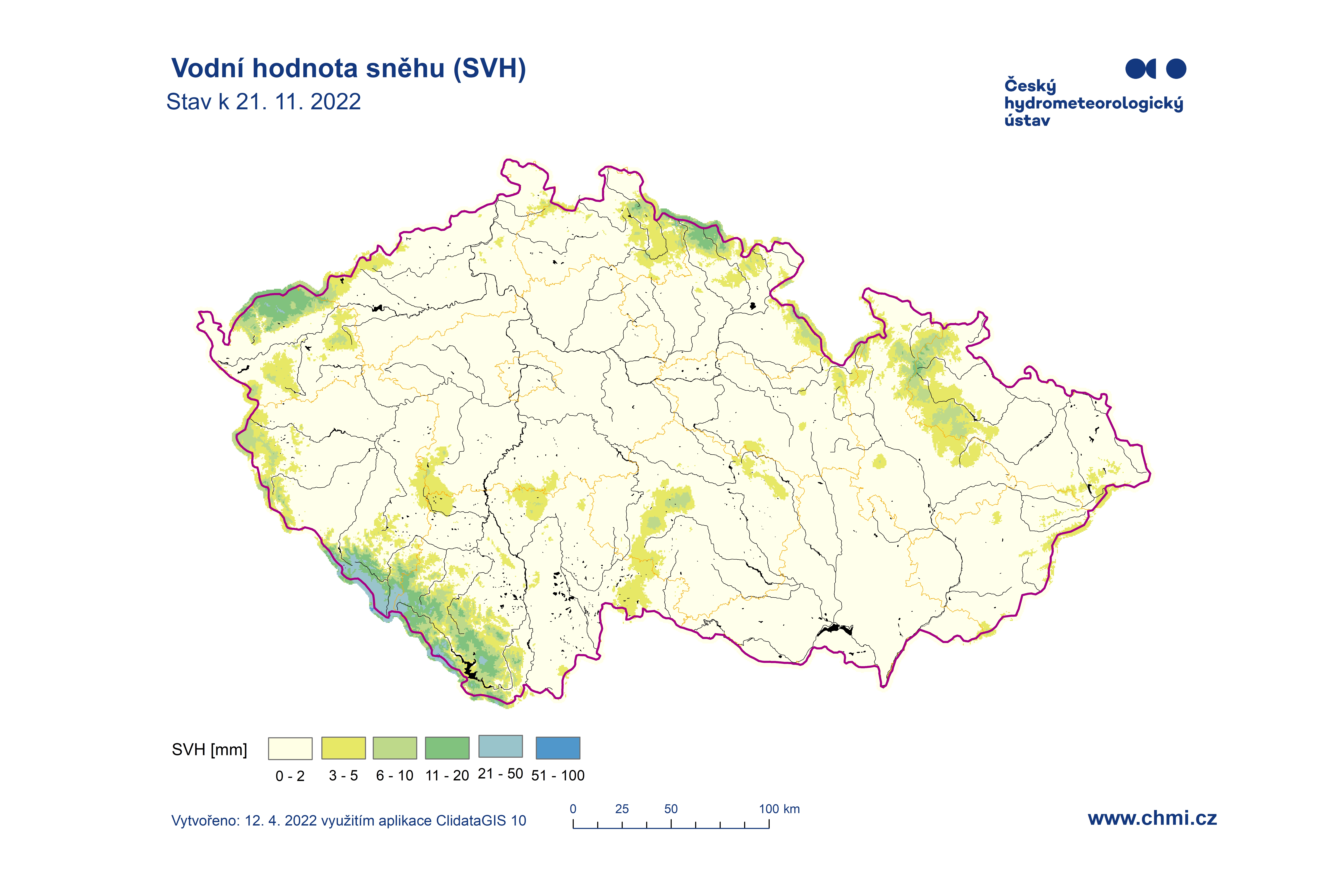 Odhad celkového množství vody ve sněhové pokrývce na území ČR k 21. 11. 2022 činí cca 0,087 mld. m3, což představuje v průměru cca 1,1 mm (1,1 litru na jeden metr čtvereční).