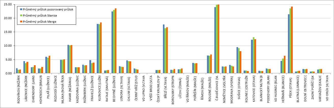| CHLUM (VLTAVA) | 2911 | 0.85 | 2888 | 0.85 | 3407 | STANICE | 0.84 | 0.88 | 0.04 | MERGE | 4.39 | 0.94 | 4.32 | 0.93 | 4.65 | STANICE | GRAF | GRAF |