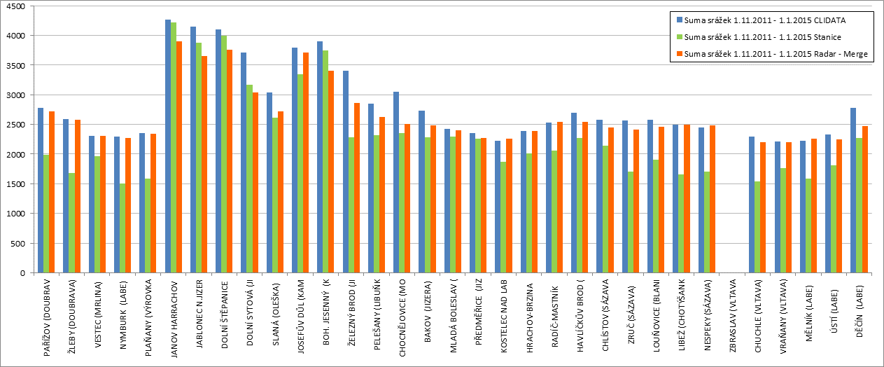 | Suma srážek 1.11.2011 - 1.1.2015 stanice | STANICE podíl ke sumě srážek z CLIDAT | Suma srážek 1.11.2011 - 1.1.2015 Merge | MERGE podíl ke sumě srážek z CLIDAT | Suma srážek 1.11.2011 - 1.1.2015 CLIDATA | Které srážkové vstupy jsou blíže MAP z CLIDAT | Nash -Sutcliffe Stanice | Nash -Sutcliffe Merge | Nash -Sutcliffe Rozdíl | Které srážkové vstupy mají lepší Nash -Sutcliffe | Průměrný průtok Stanice | STANICE Podíl průměrného simulovaného průtoku k pozorovanému průtoku | Průměrný průtok Merge | MERGE Podíl průměrného simulovaného průtoku k pozorovanému průtoku | Průměrný průtok Pozorovaný průtok | Které průměrné průtoky jsou blíže pozorování | Graf simulace průtoku | Graf simulace přítoku z mezipovodí | |