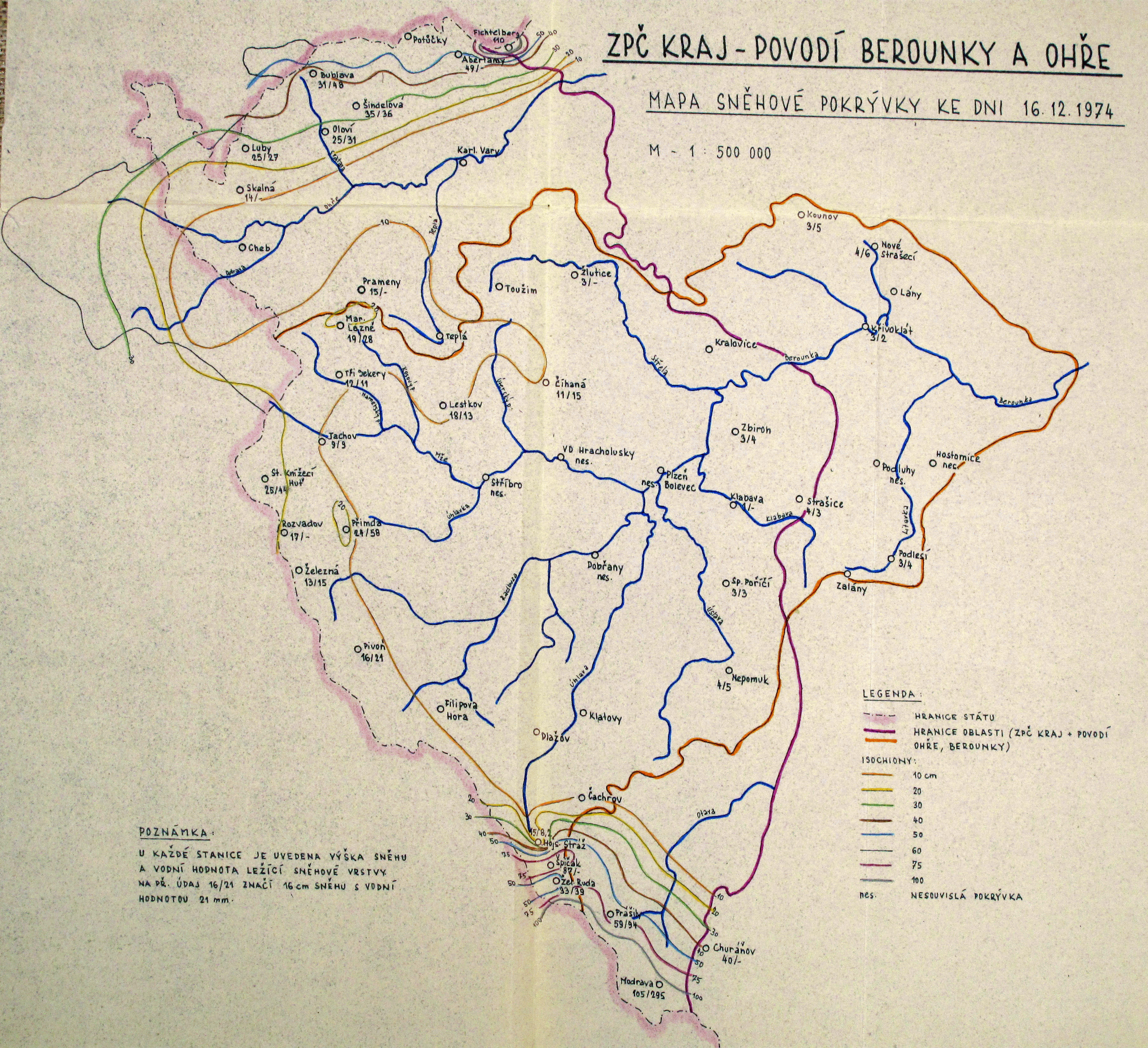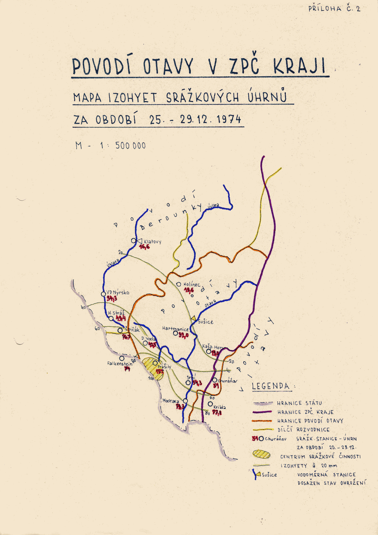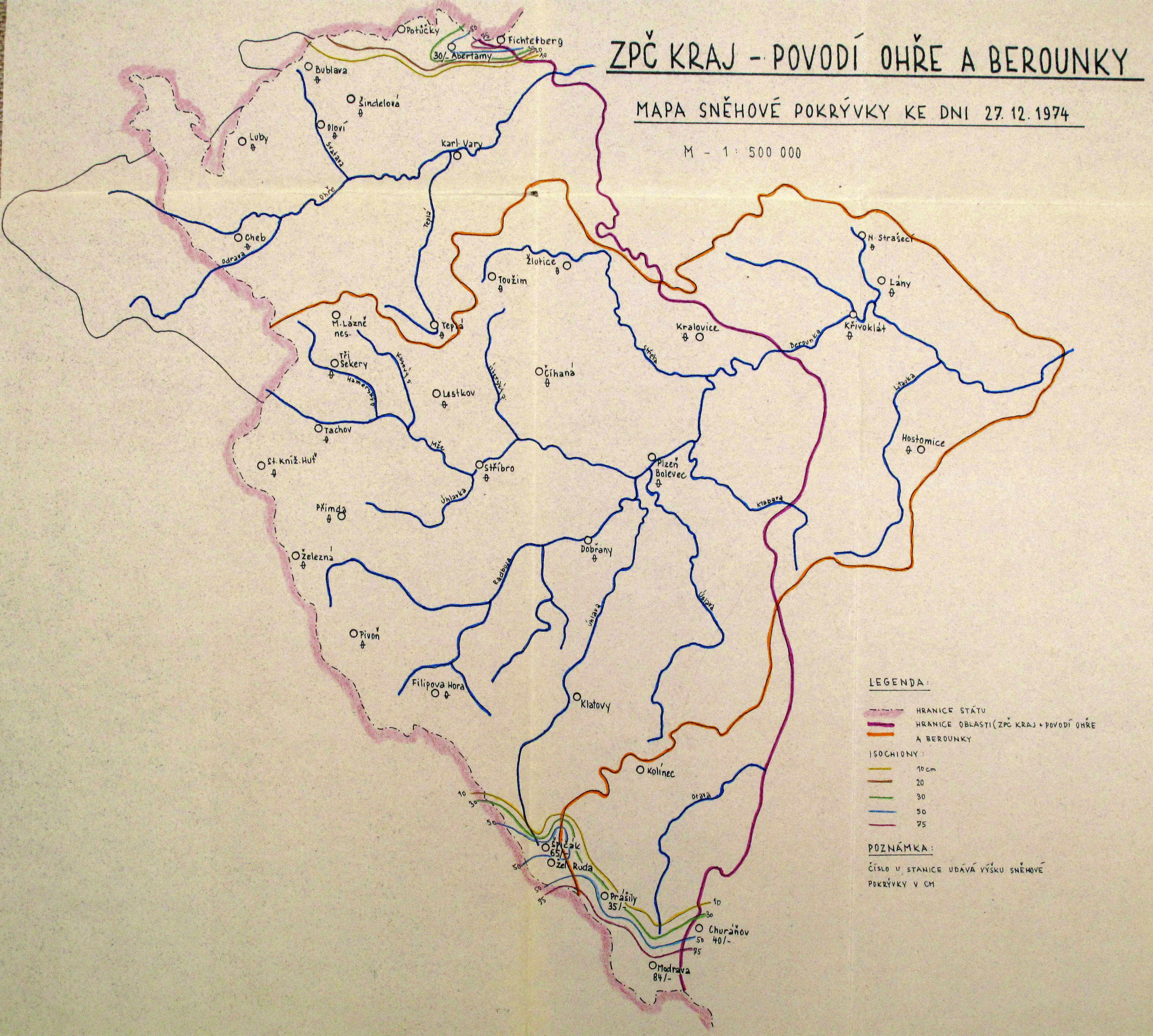 kraji - mapa izohyet srážkových úhrnů za období 25. - 29.12.1974 (160 kB,
