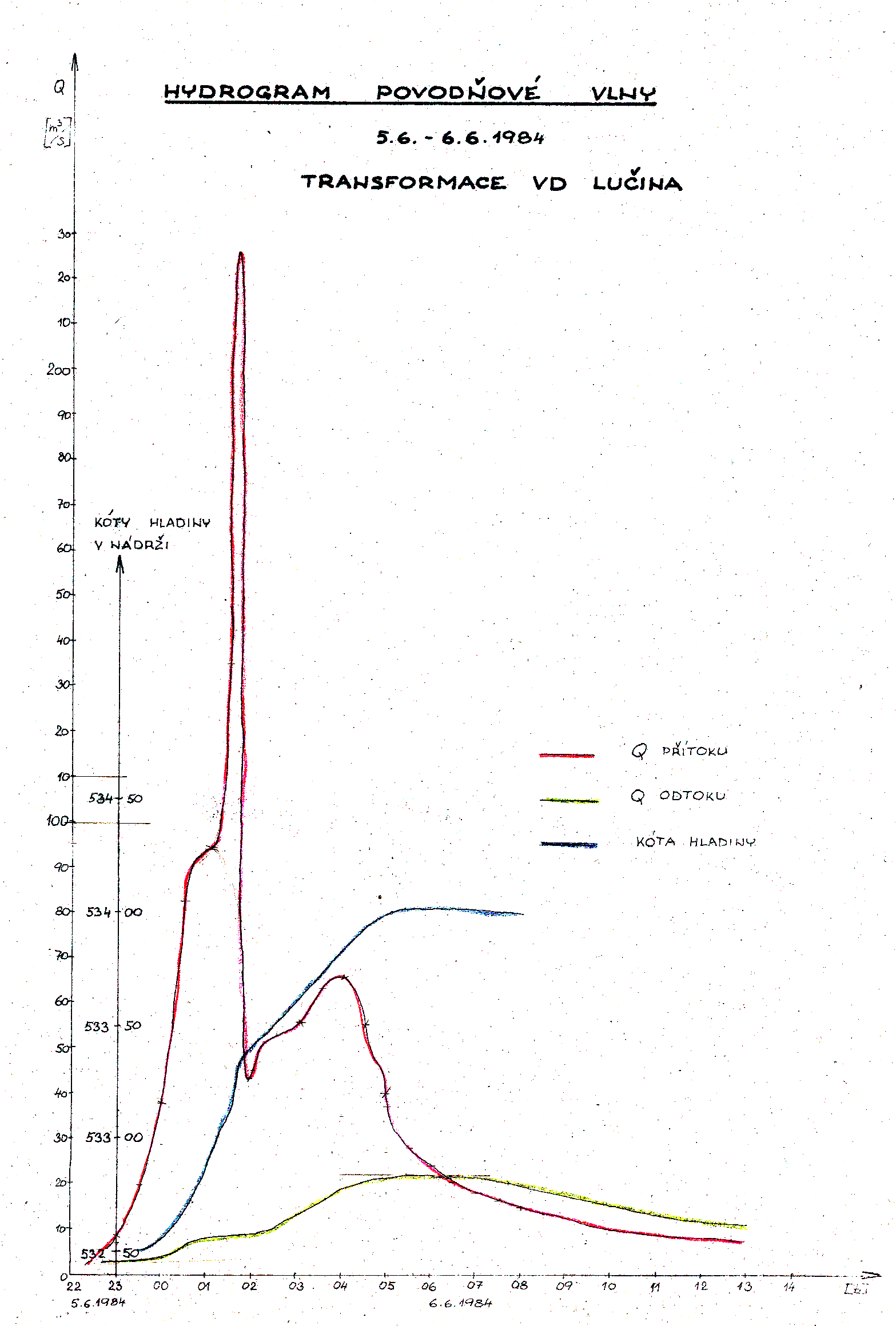 povodňové vlny 5. - 6.6. – Transformace VD Lučina (1,2 MB, soubor GIF)