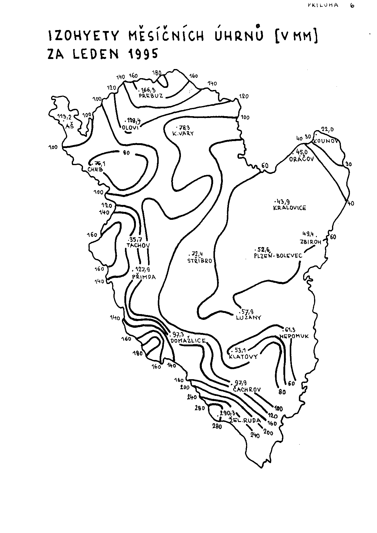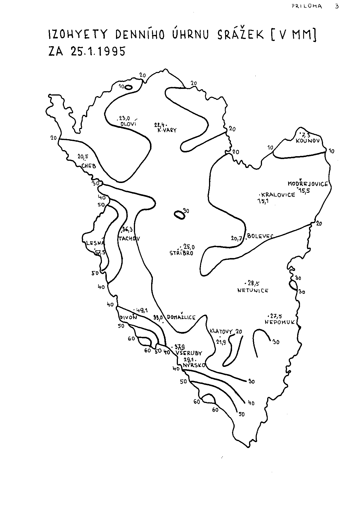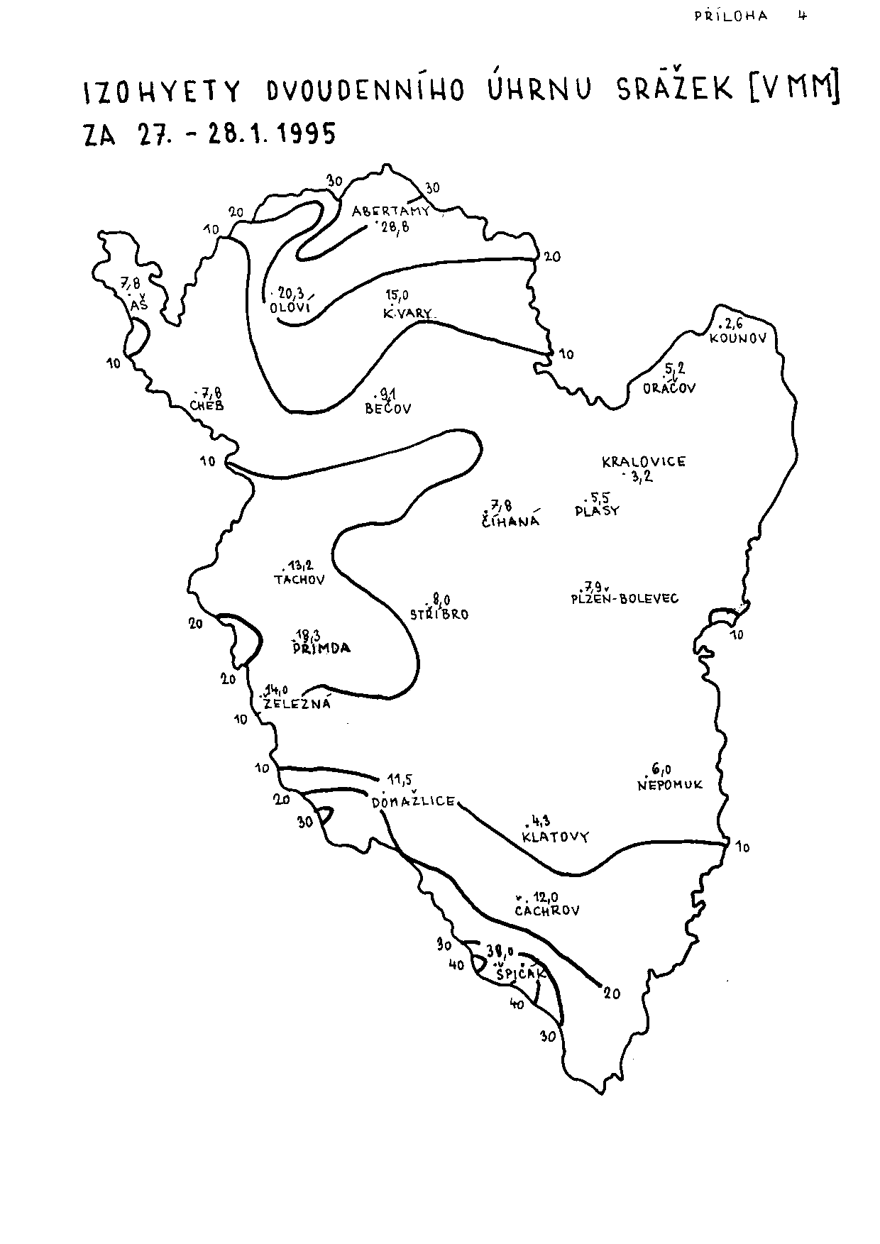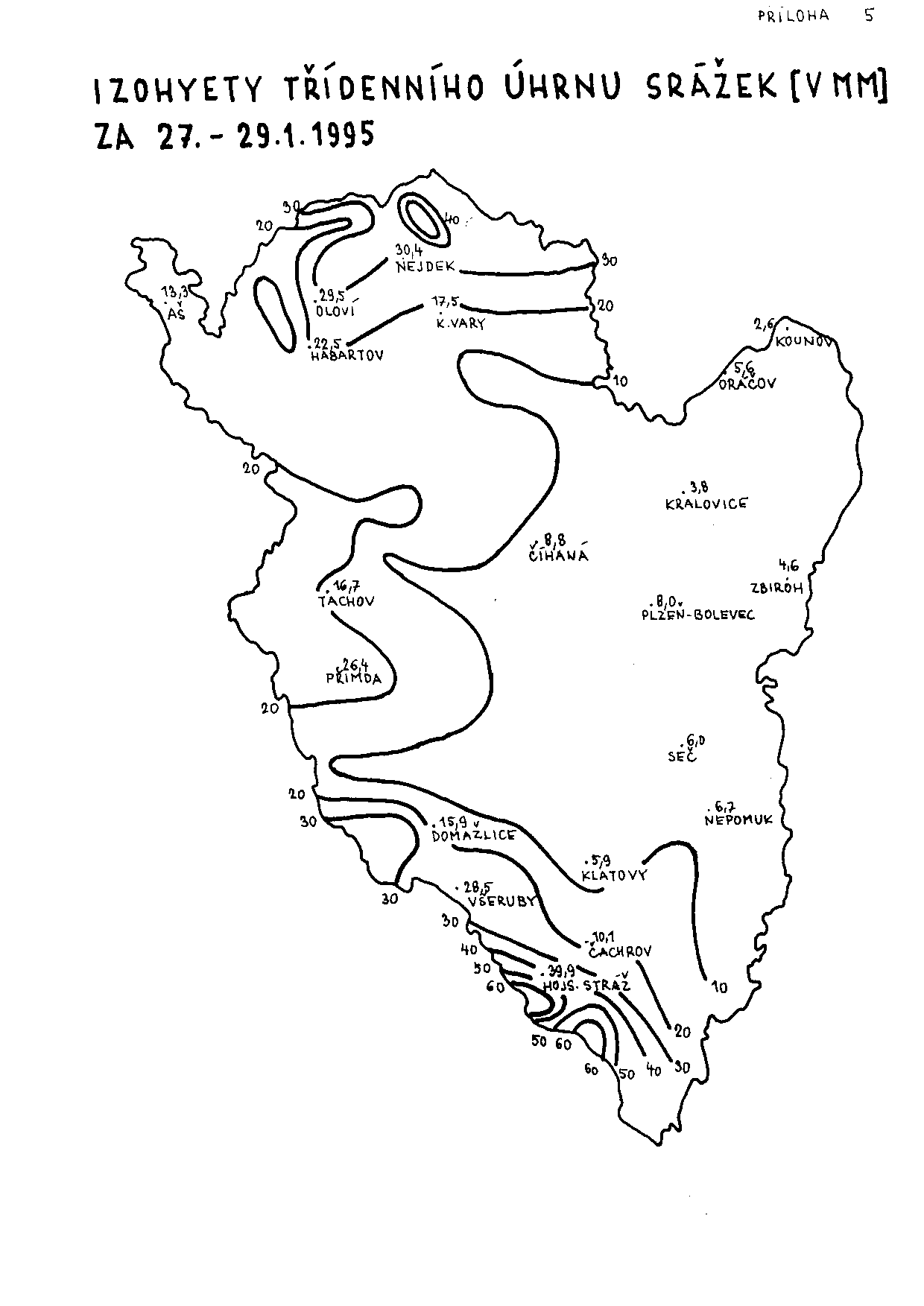 5. Izohyety třídenního úhrnu srážek za 27. - 29.1.1995