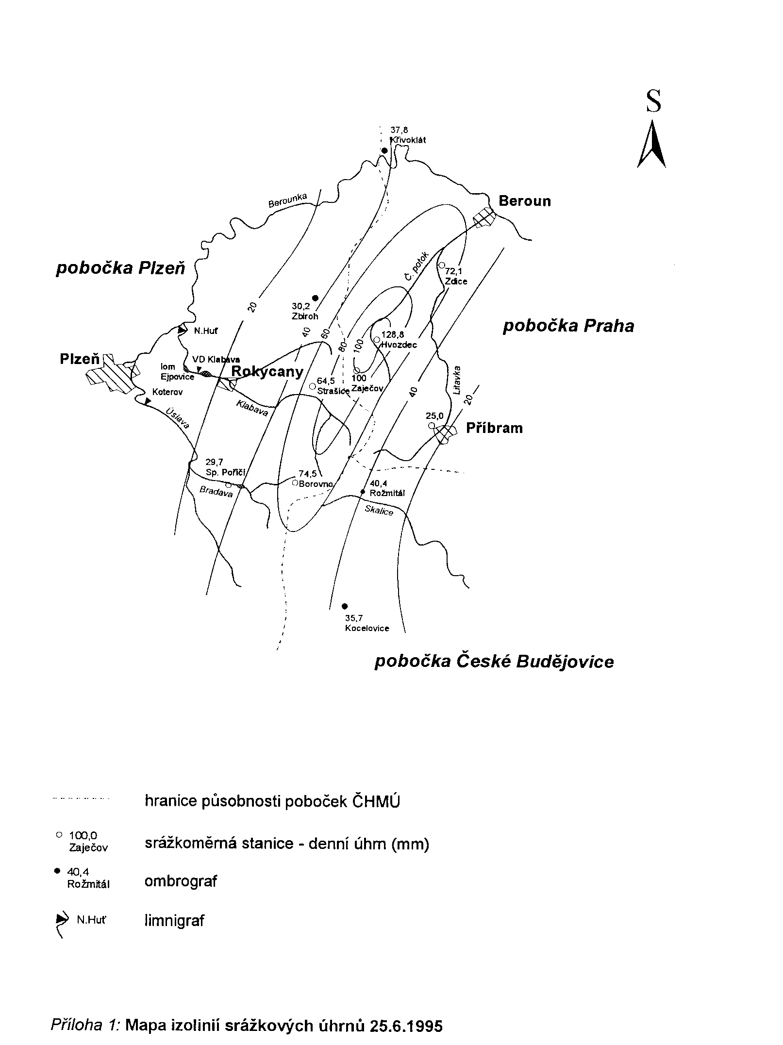 srážkových úhrnů - 25. 6. 1995 (37 kB, soubor GIF)
