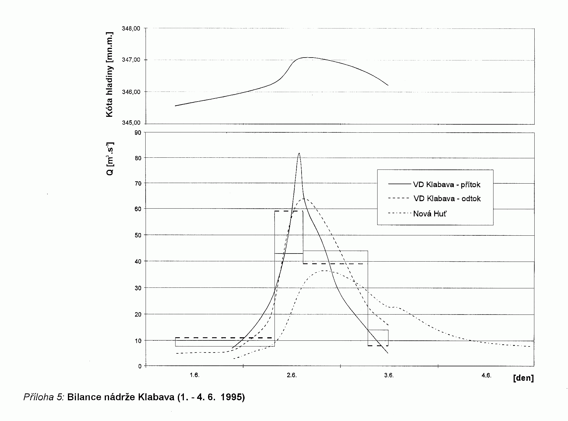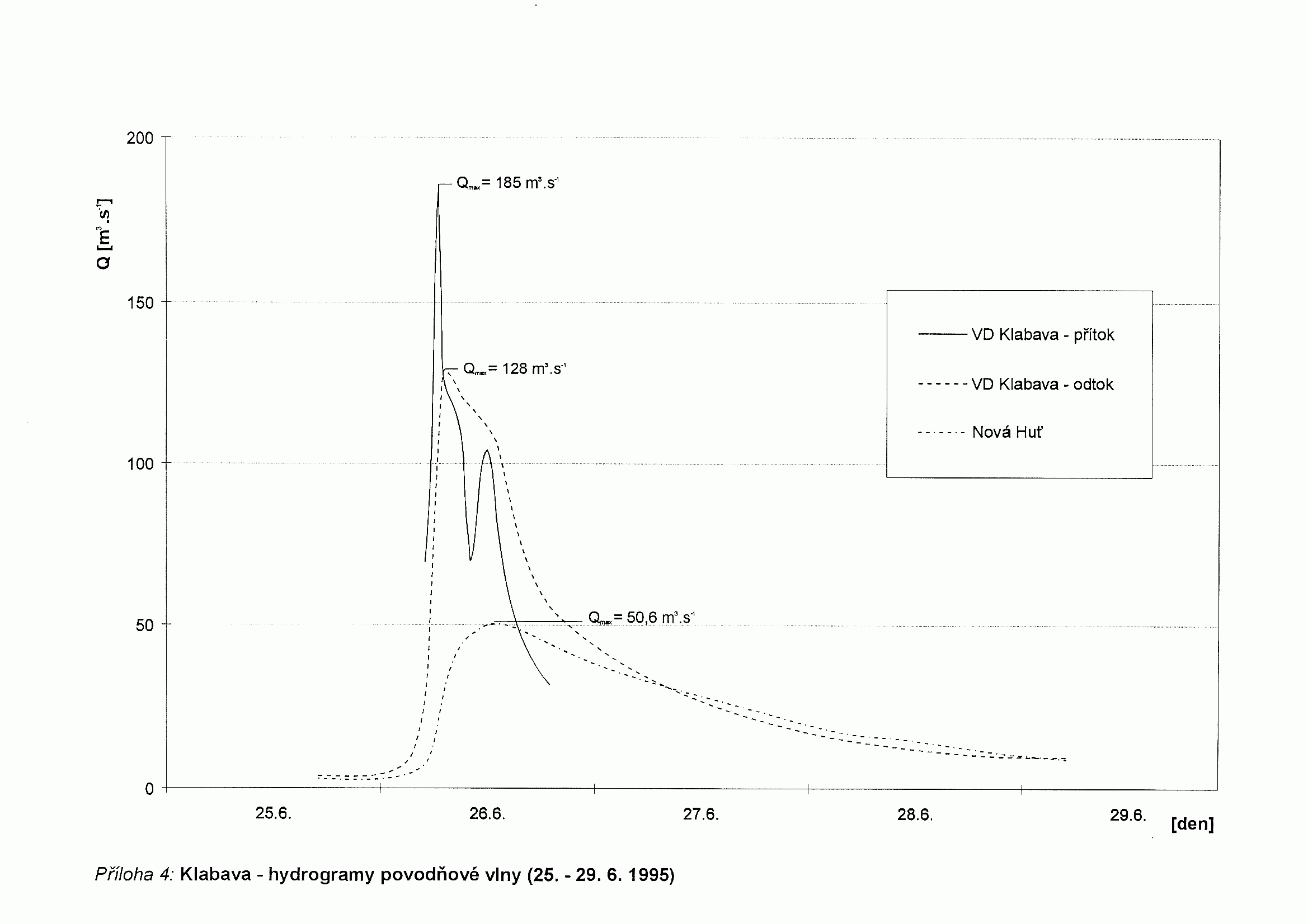 5. Klabava - hydrogramy povodňové viny (1. - 4. 6.1995)