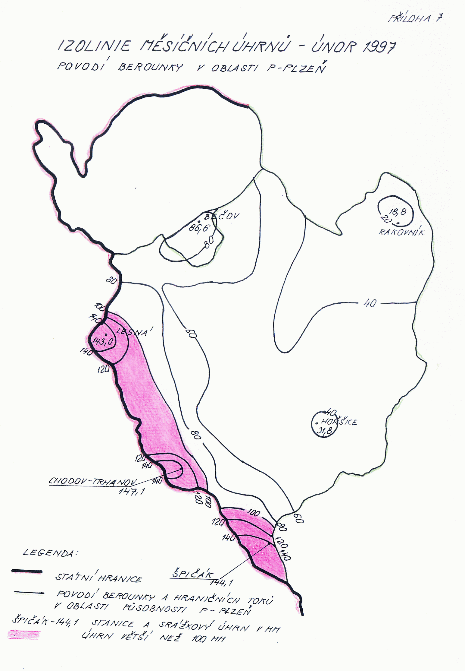 7. Izolinie měsíčních úhrnů -