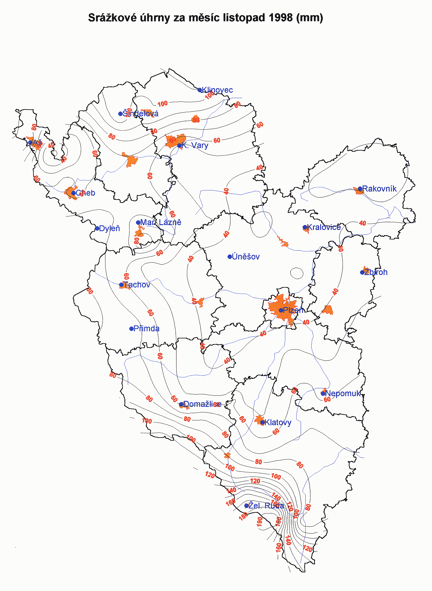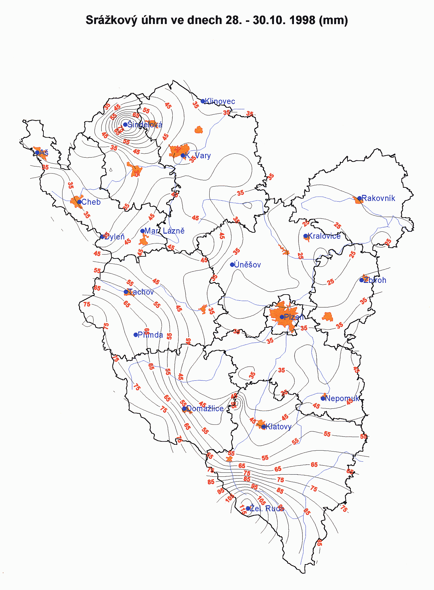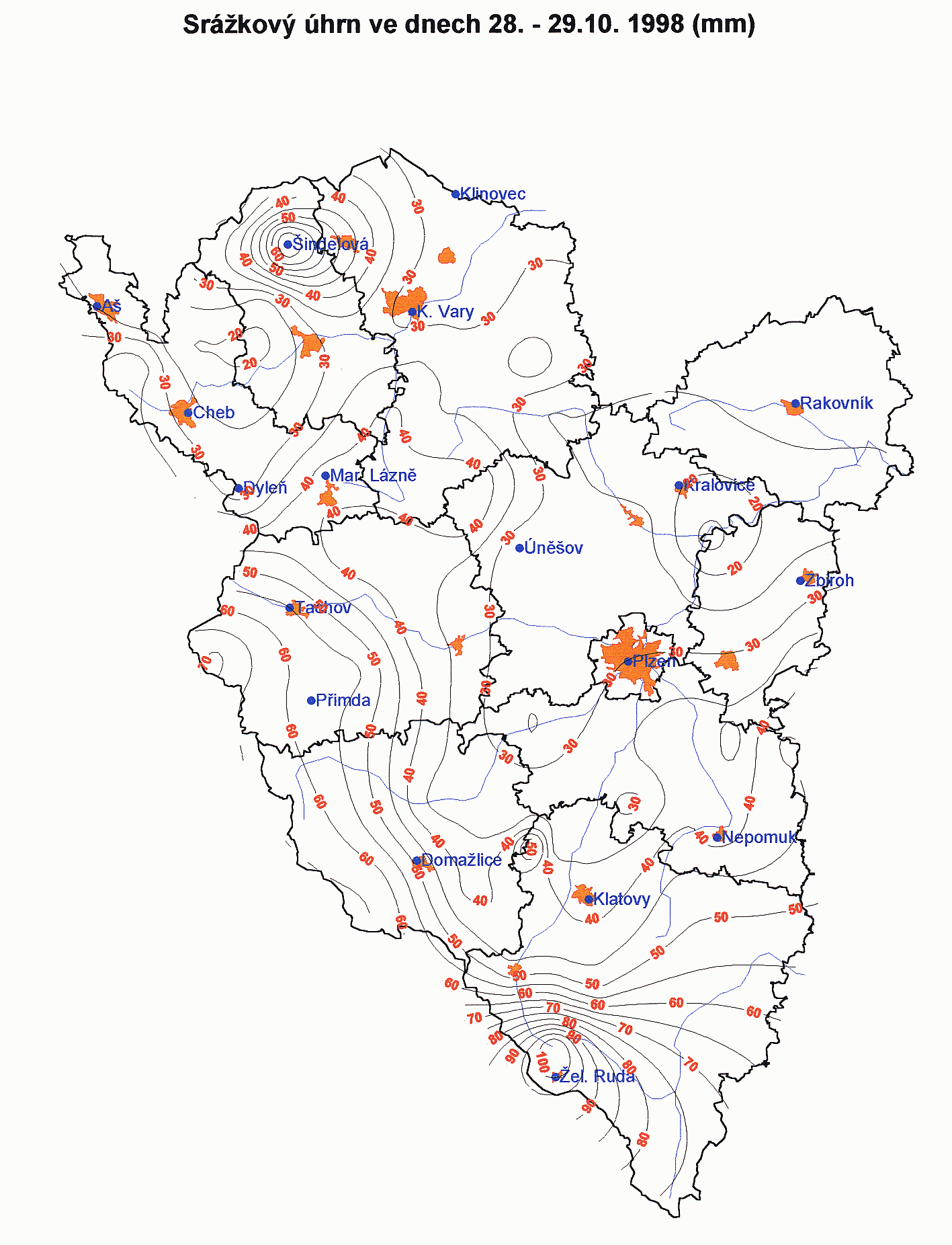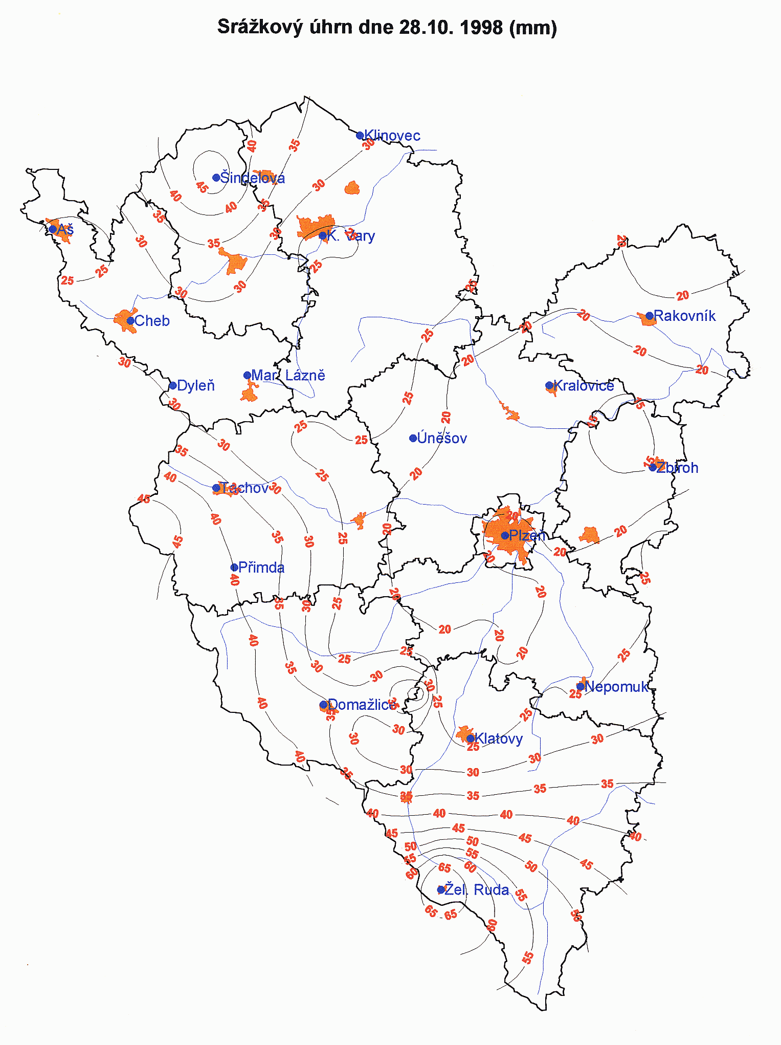 5. Srážkový úhrn dne 28.10.1998 (196 kB, soubor GIF)