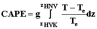 kde g je tíhové zrychlení. CAPE je tedy integrální míra