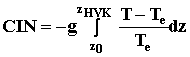 CIN je práce, kterou je třeba vykonat pro vyzvednutí adiabaticky izolované vzduchové částice s nulovou počáteční rychlostí od země do hladiny volné konvekce HVK. Na termodynamickém diagramu odpovídá ploše mezi křivkou zvrstvení a suchou resp. vlhkou adiabatou do dosažení HVK (viz. Obr.1). Chceme-li vyjádřit CIN jako kladnou veličinu, lze užít výraz: