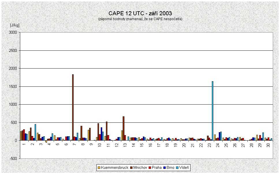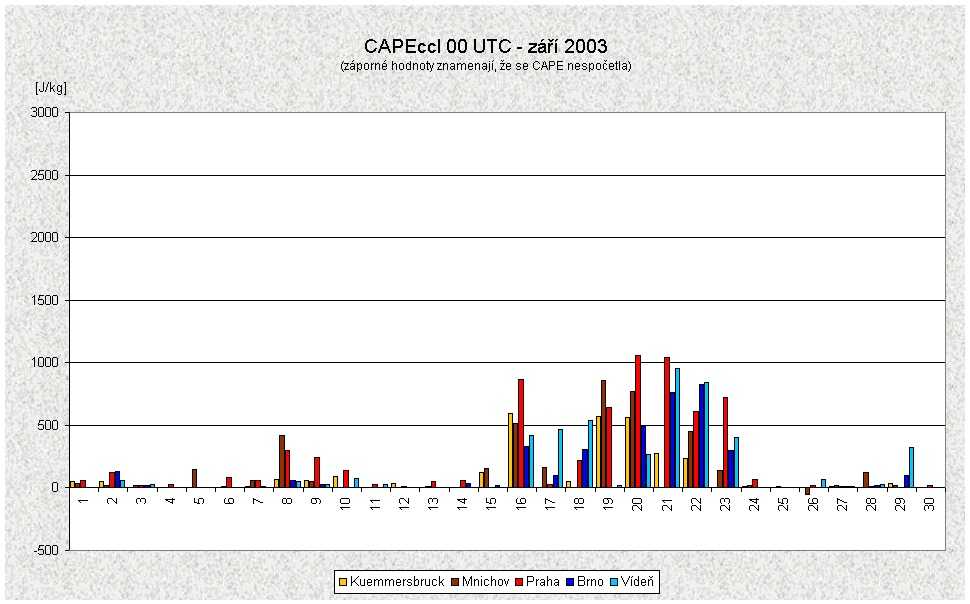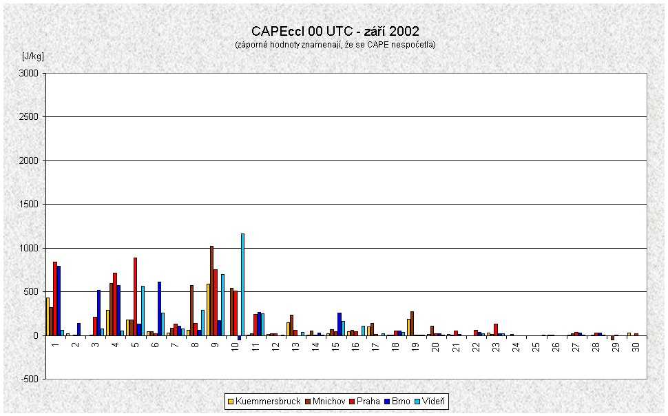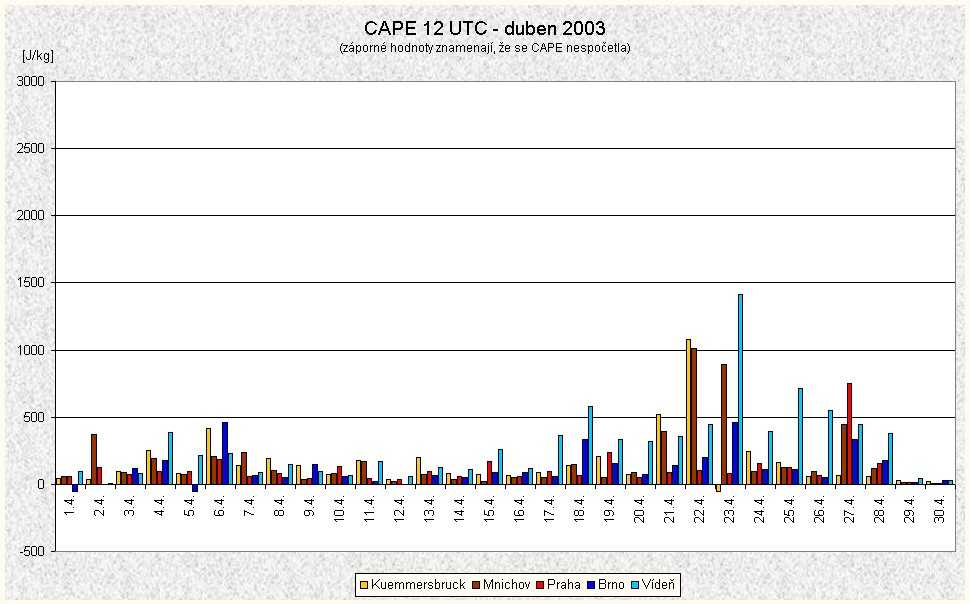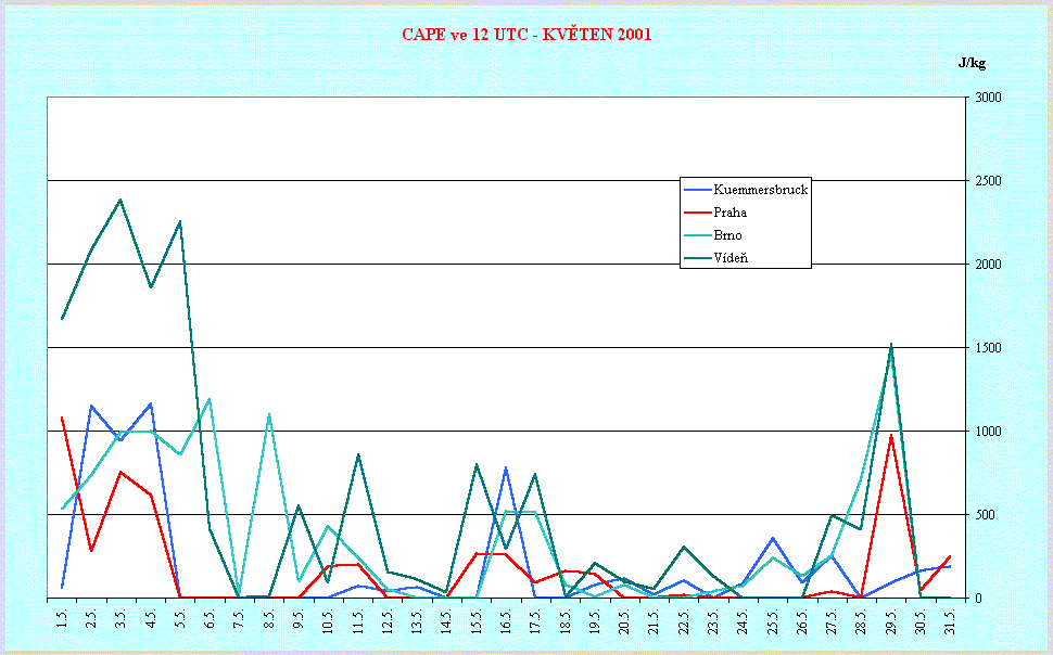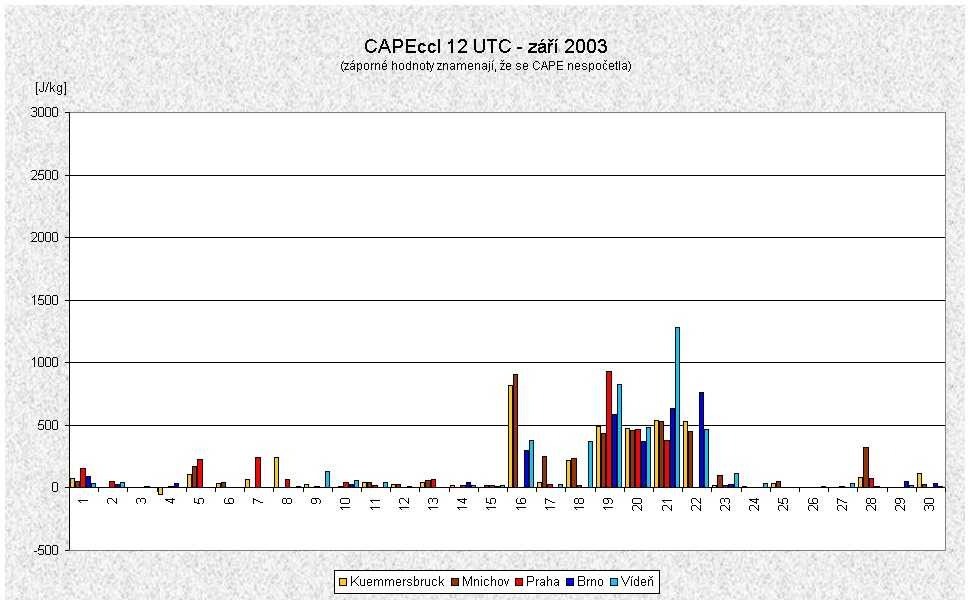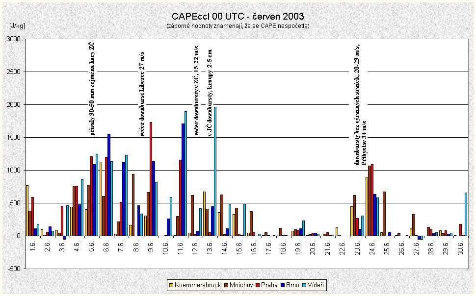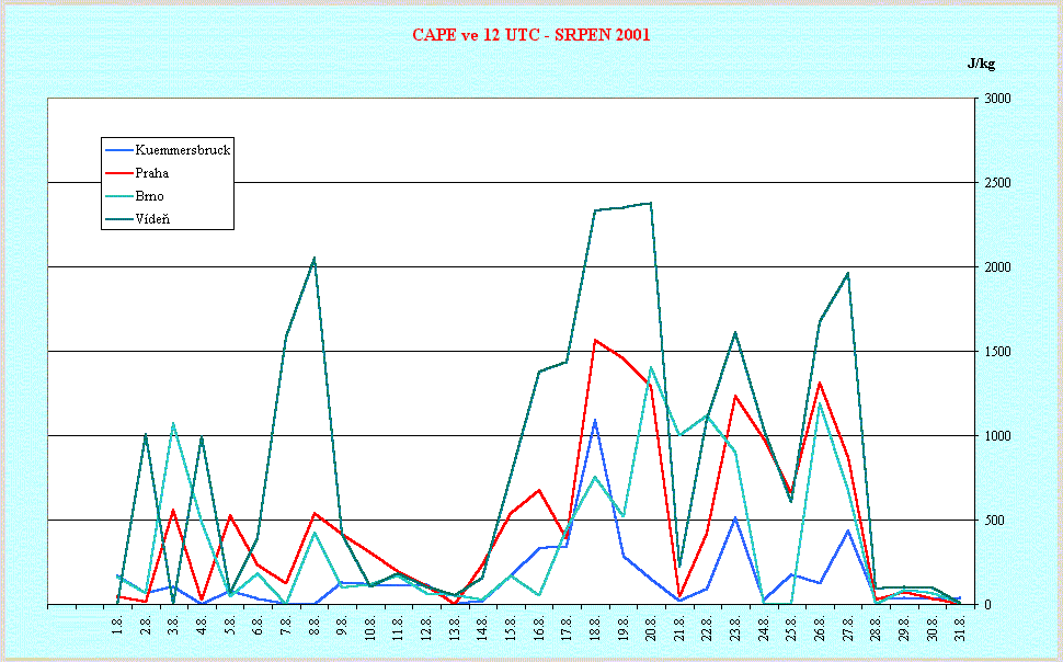 600-2500 J/kg (Sulan, ČHMÚ 2000). První hodnocení CAPE ze souborů sondáží