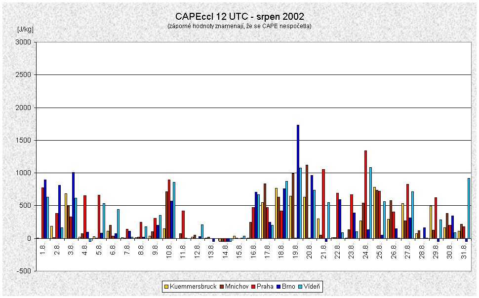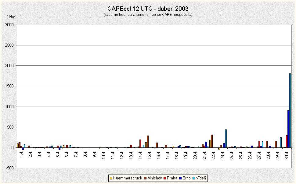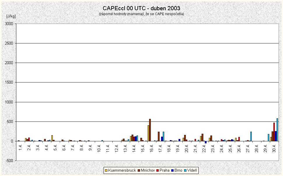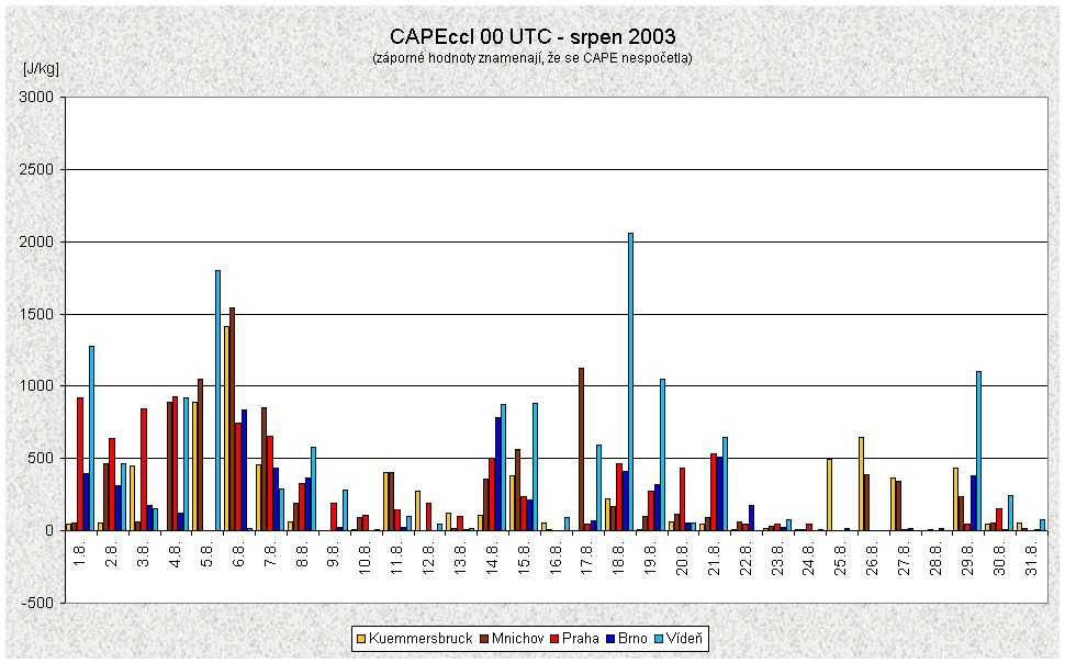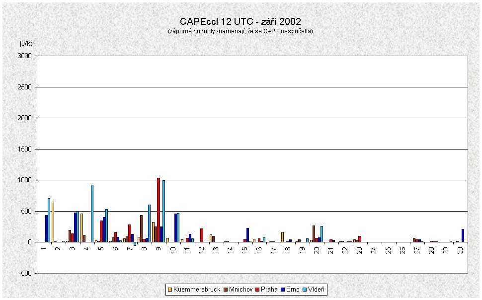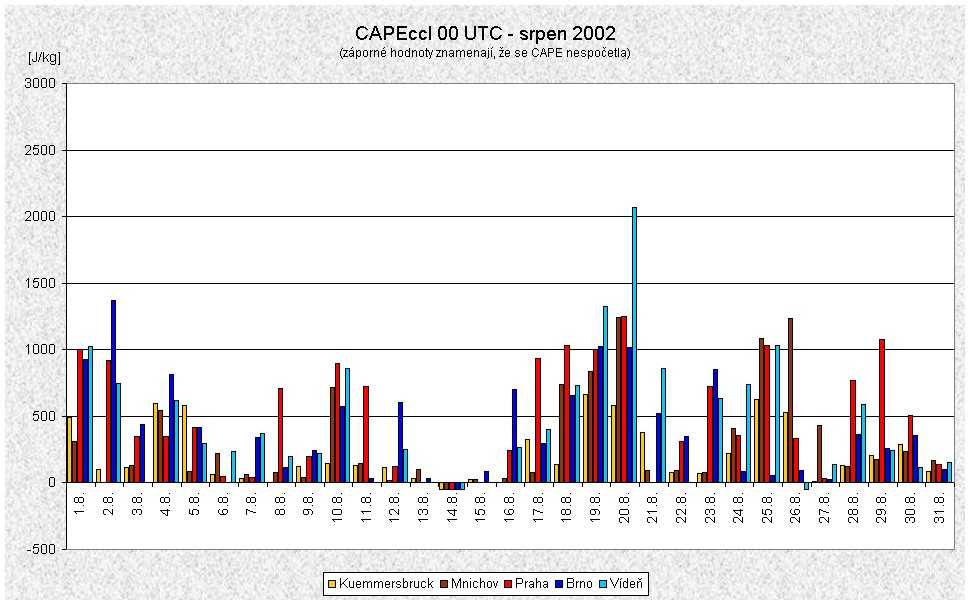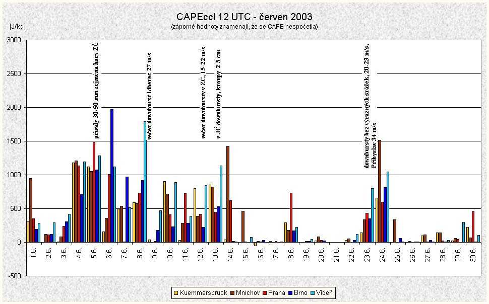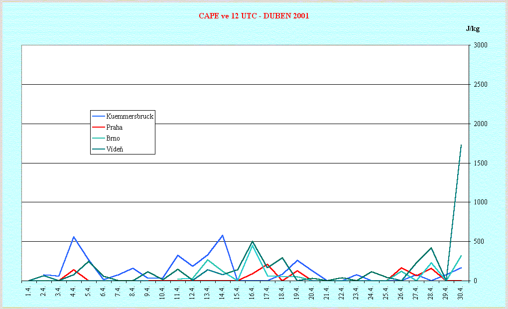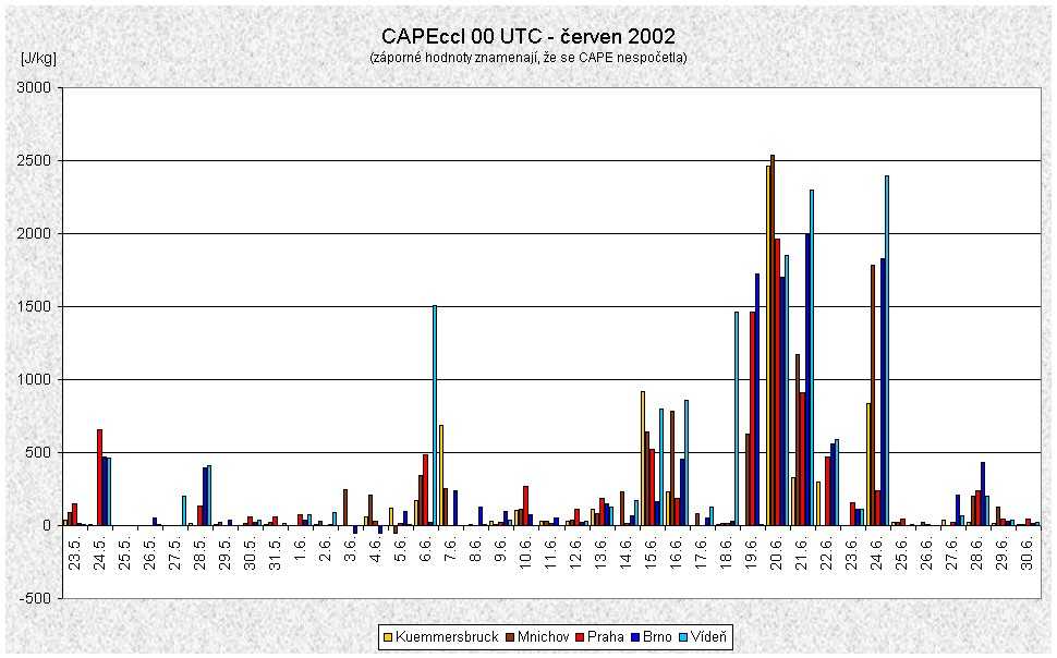 600-2500 J/kg (Sulan, ČHMÚ 2000). První hodnocení CAPE ze souborů sondáží