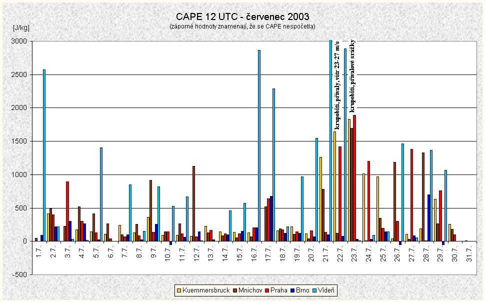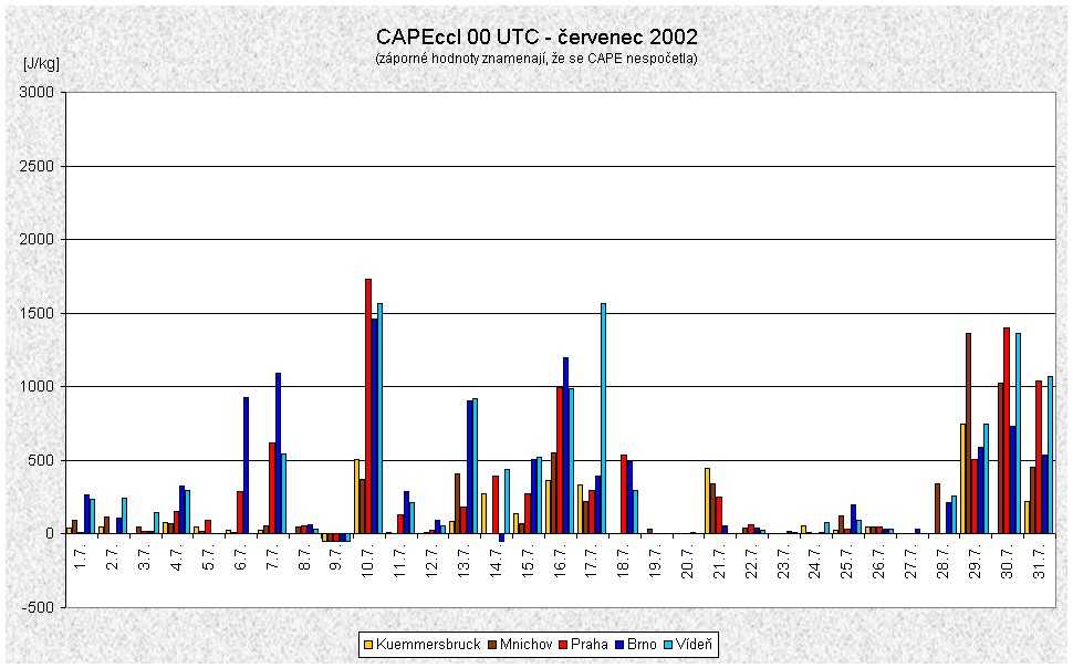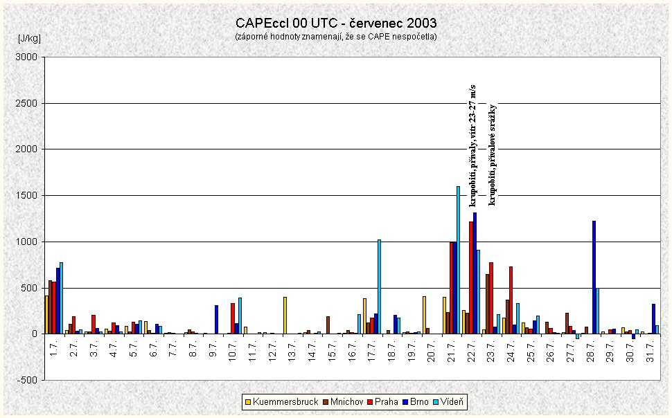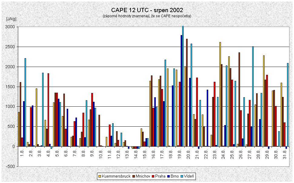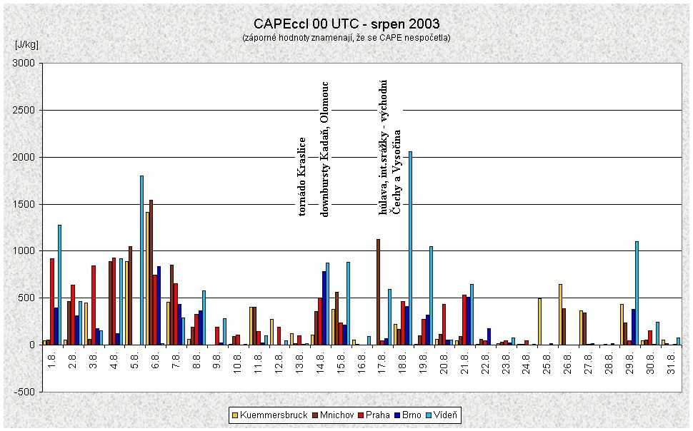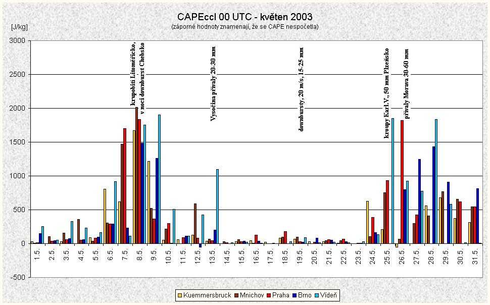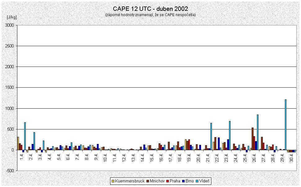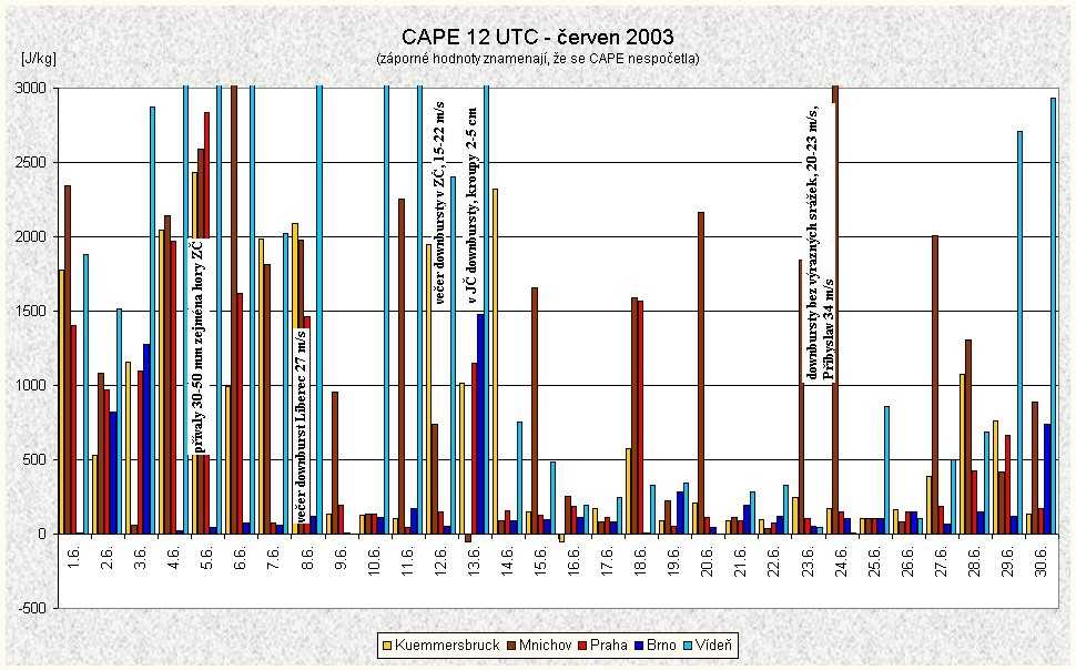 600-2500 J/kg (Sulan, ČHMÚ 2000). První hodnocení CAPE ze souborů sondáží