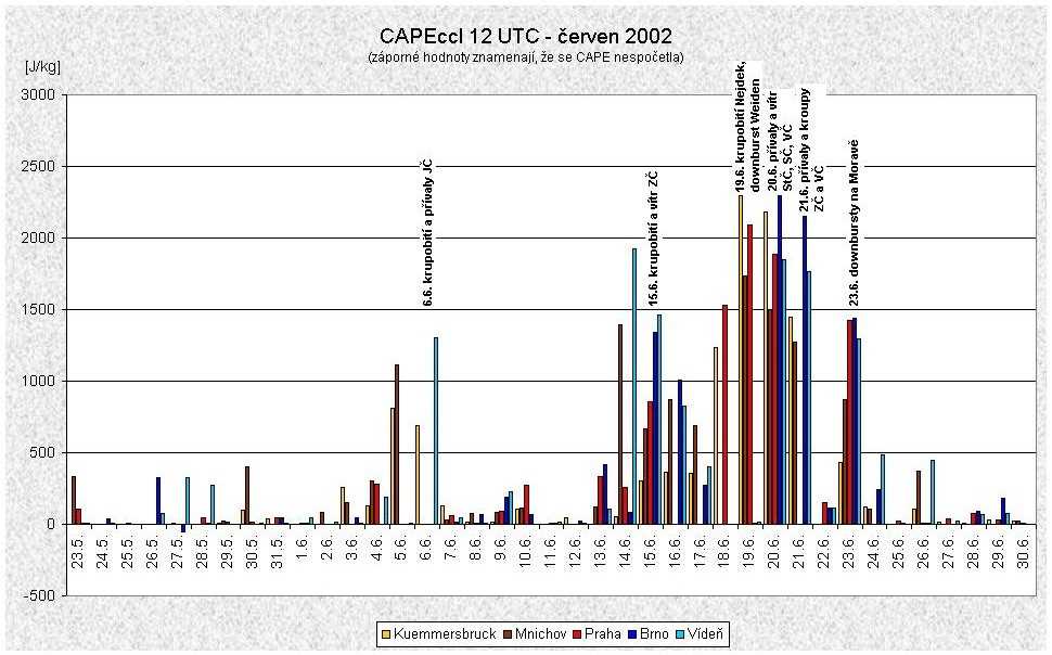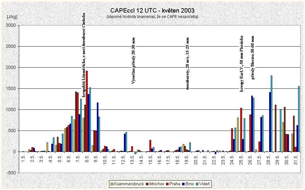 J/kg v termínu 12 UTC, zatímco ve dnech s výskytem četných bouřek