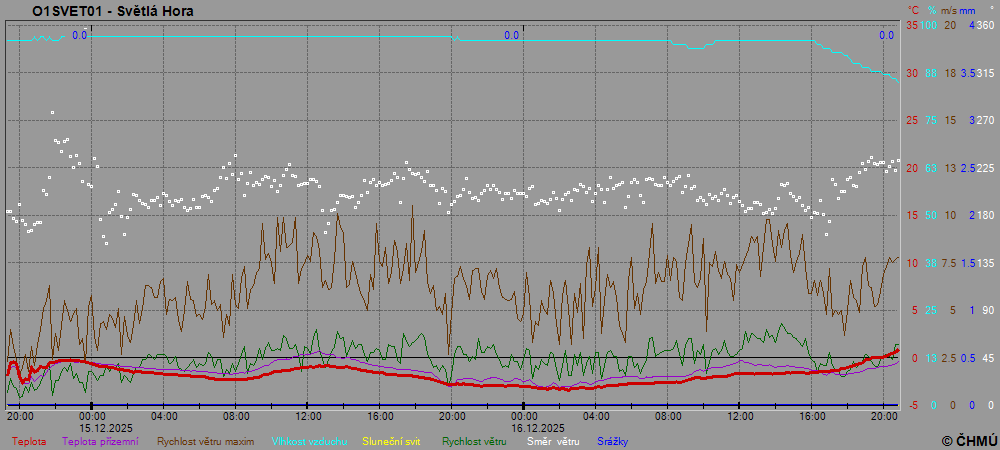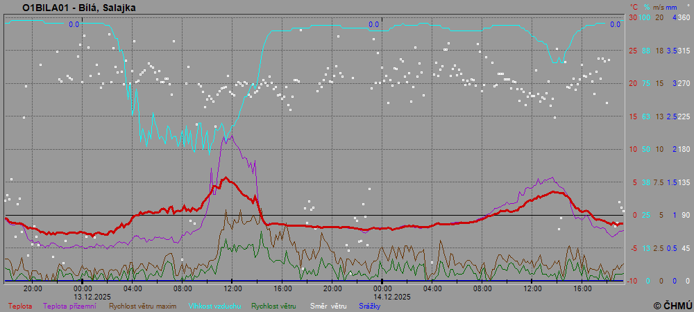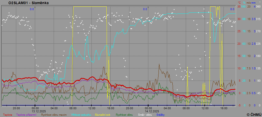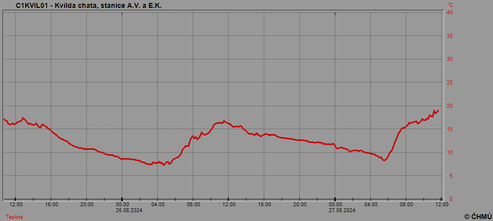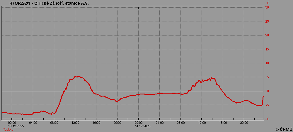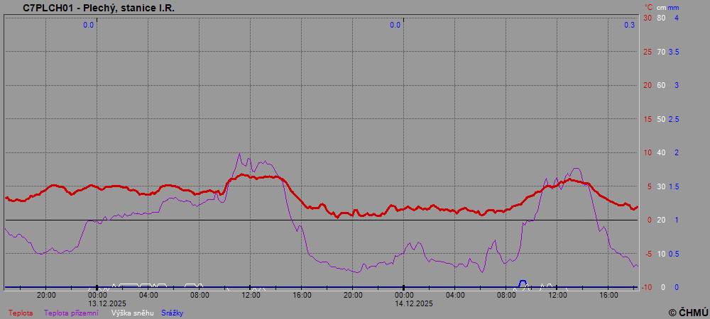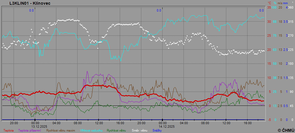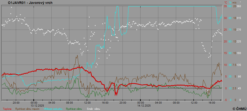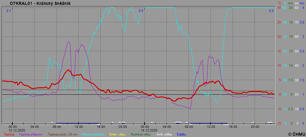 Speciální sestava: on-line počasí z horských stanic ČHMÚ. Čas na ose x je udáván v SEČ.