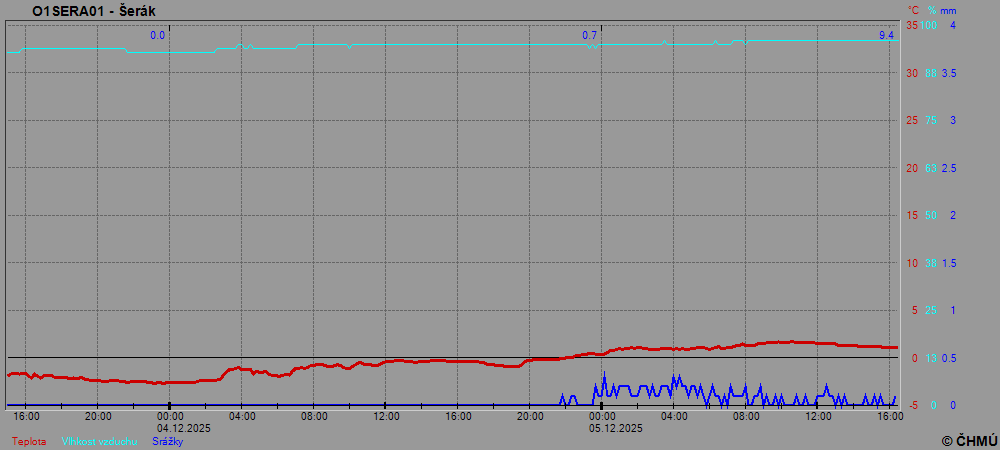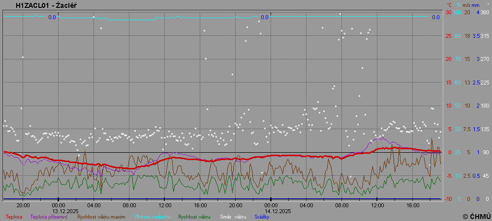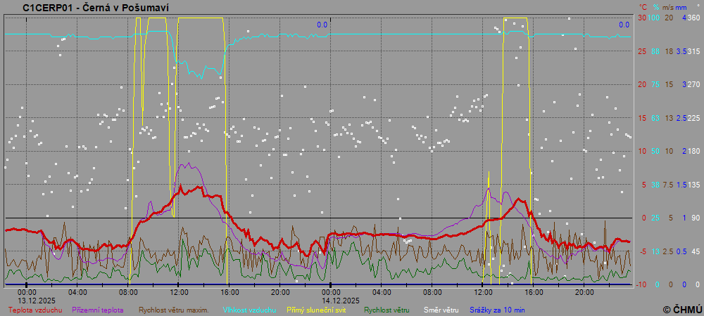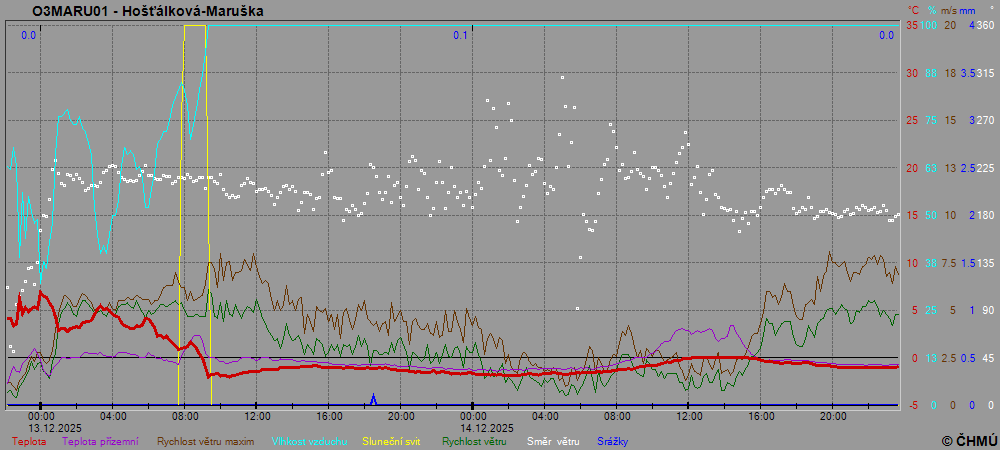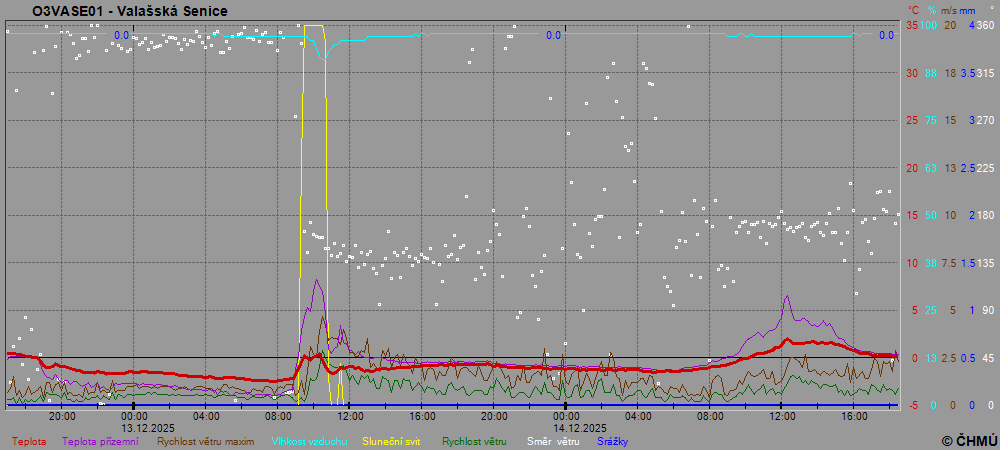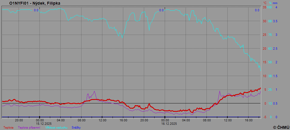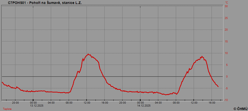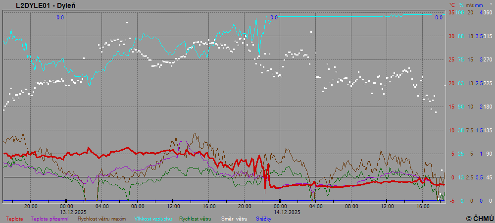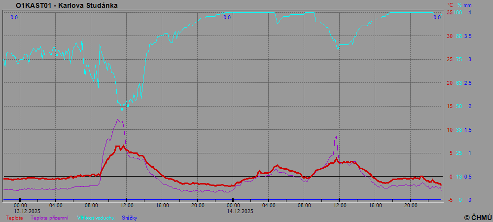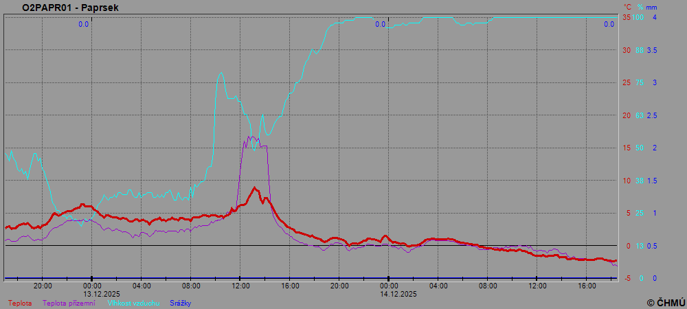 Speciální sestava: on-line počasí z horských stanic ČHMÚ. Čas na ose x je udáván v SEČ.