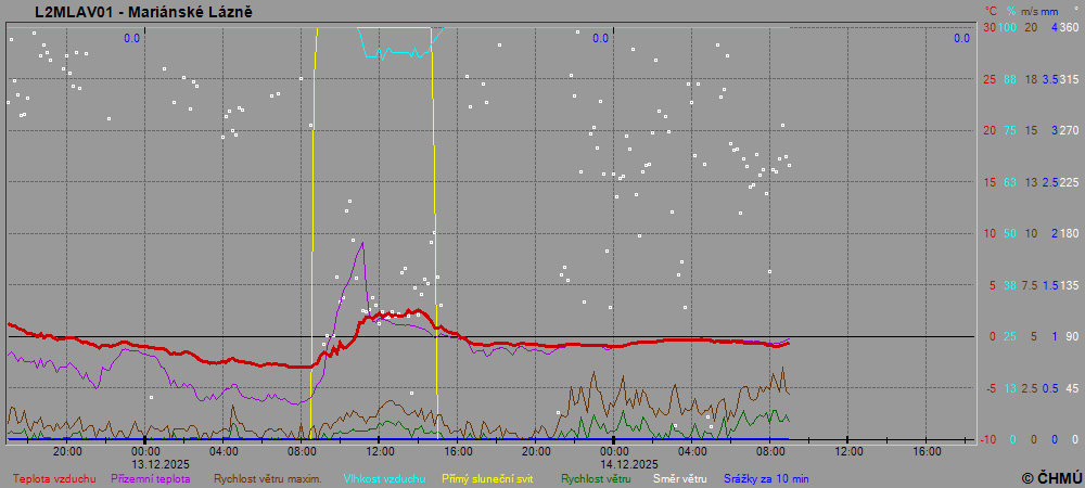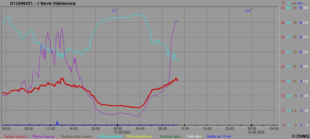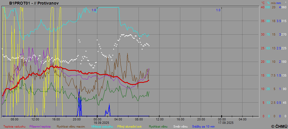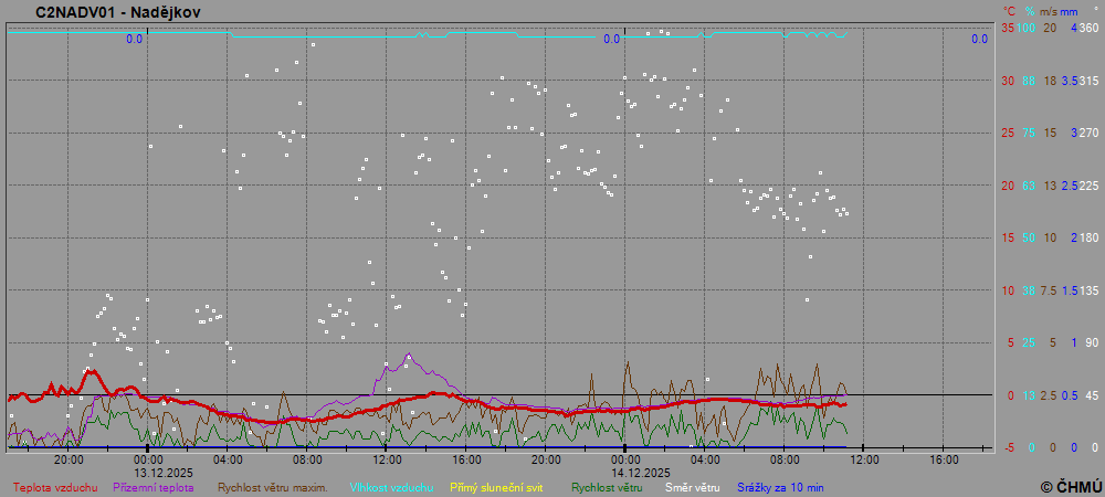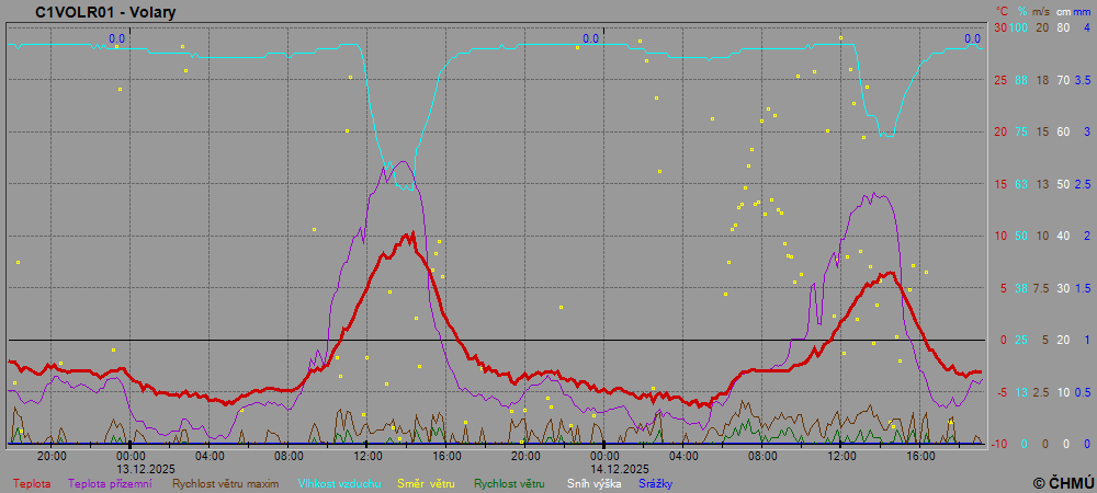 Všechny grafy zobrazují aktuální naměřená data z automatických klimatologických stanic a jsou aktualizovány po 10 minutách. Data nejsou nijak verifikována!