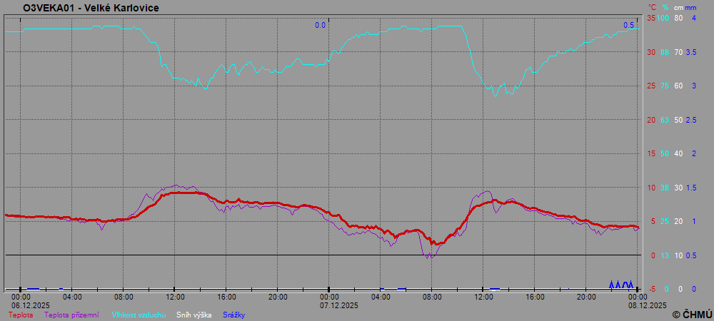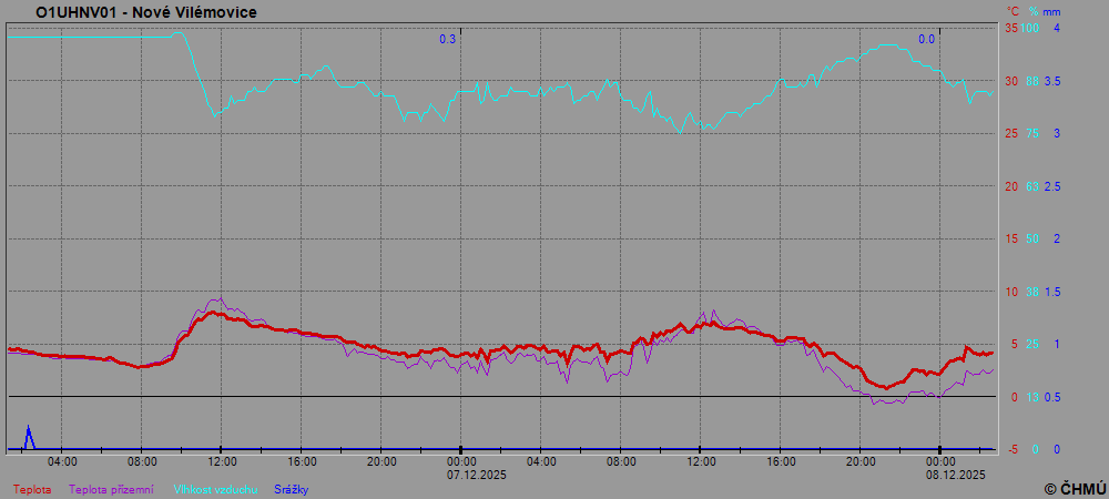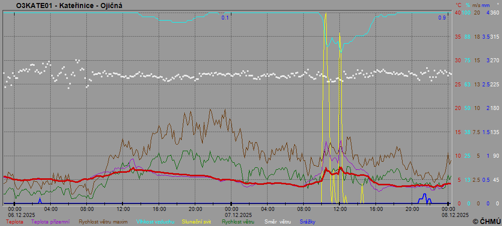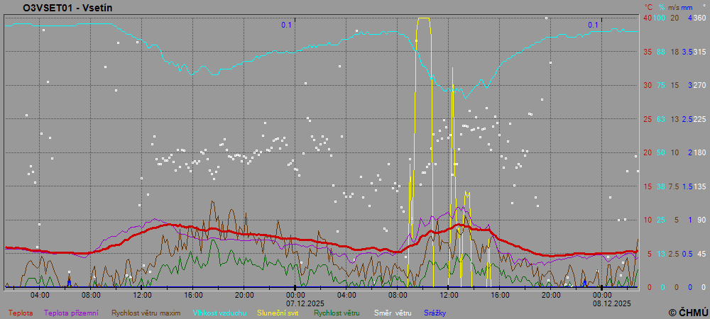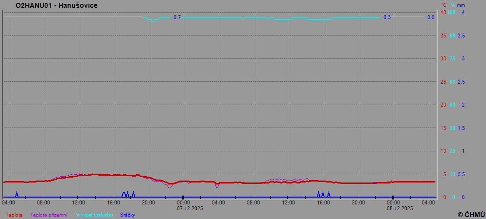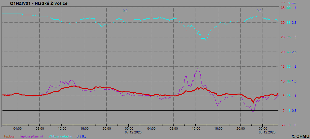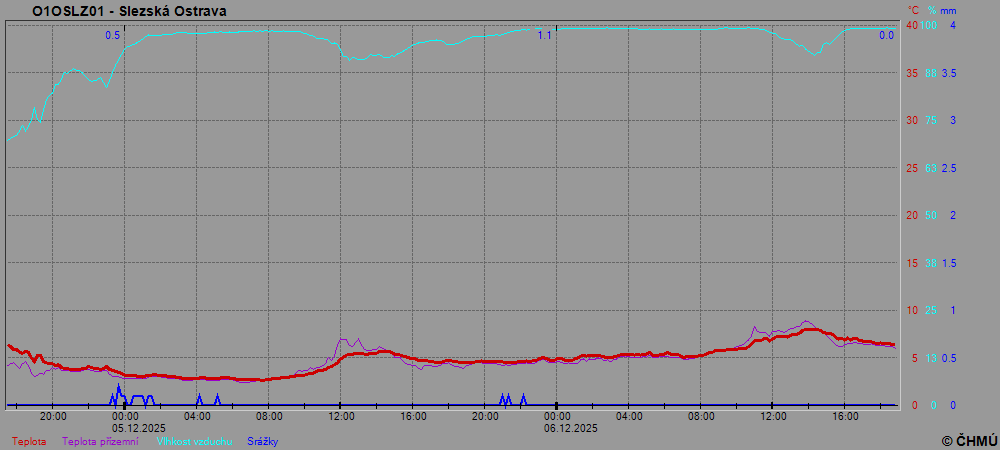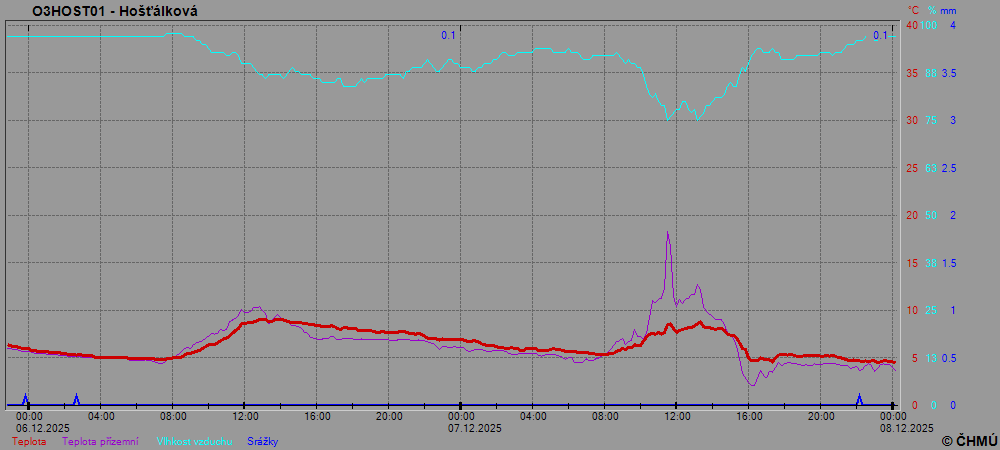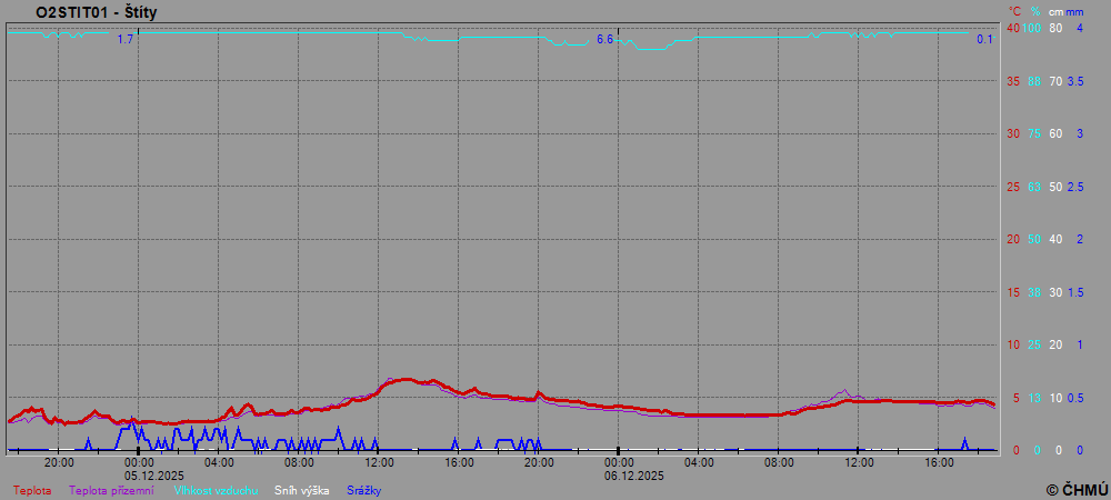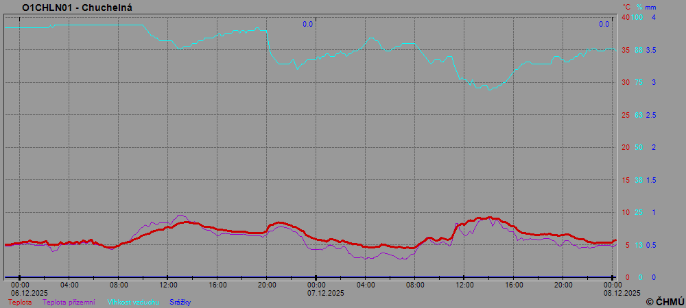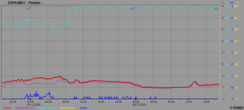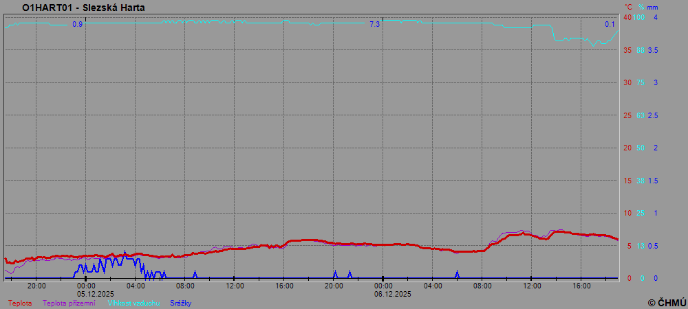 Grafy zobrazují aktuální naměřená data z automatických klimatologických stanic a jsou aktualizovány po 10 minutách. Čas na ose x je udáván v SEČ.
