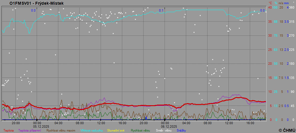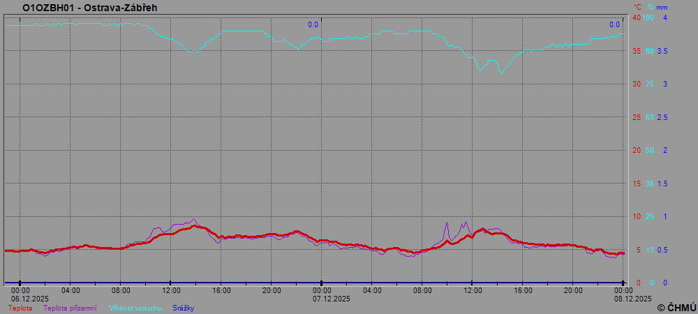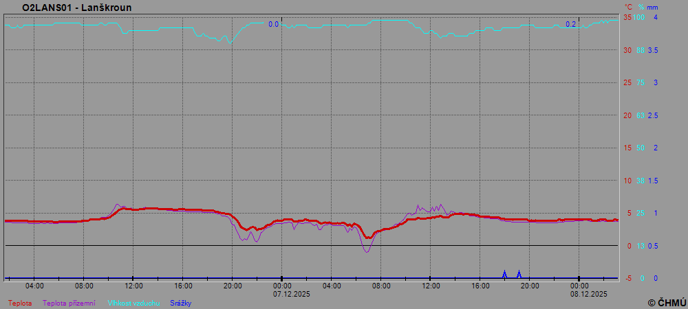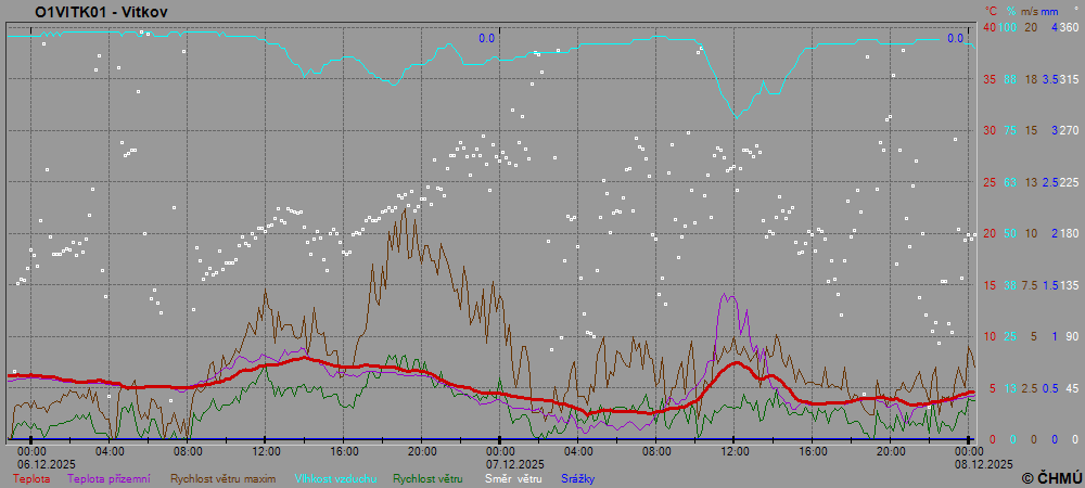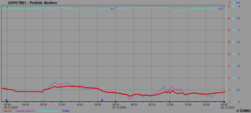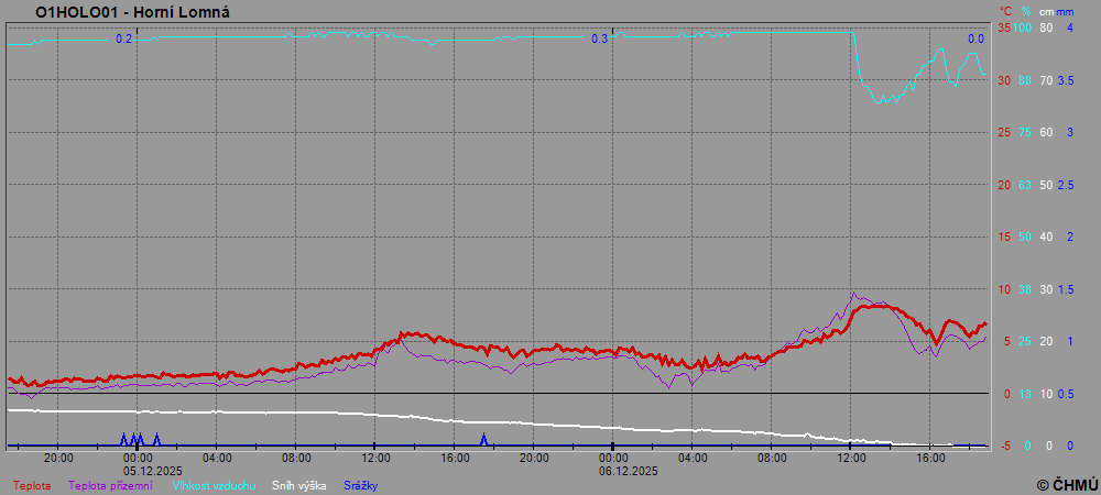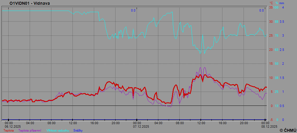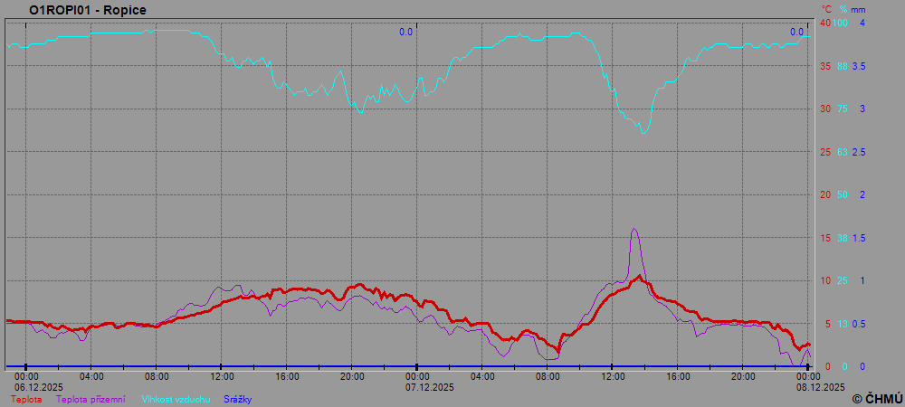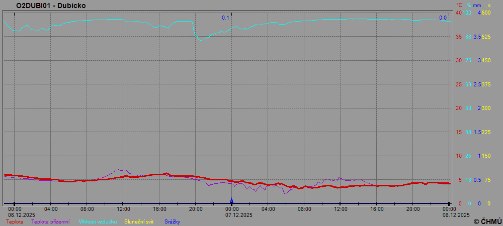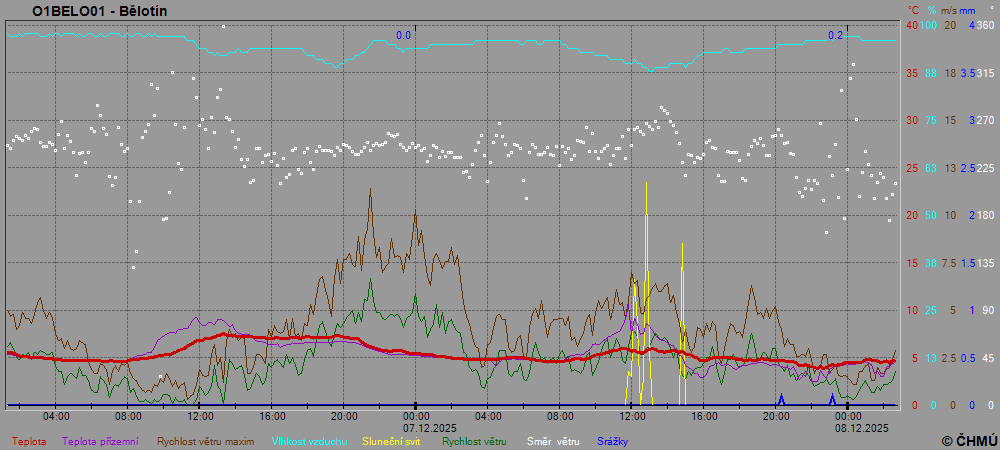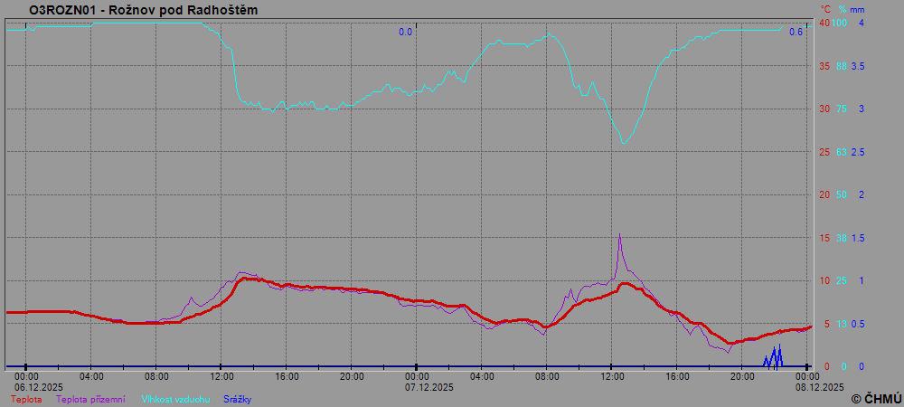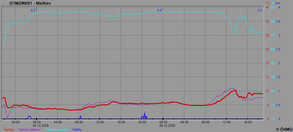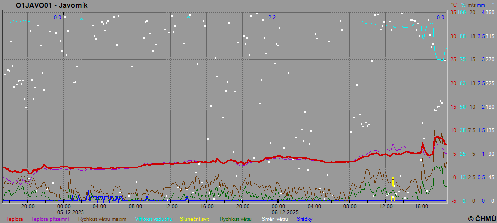 Grafy zobrazují aktuální naměřená data z automatických klimatologických stanic a jsou aktualizovány po 10 minutách. Čas na ose x je udáván v SEČ.