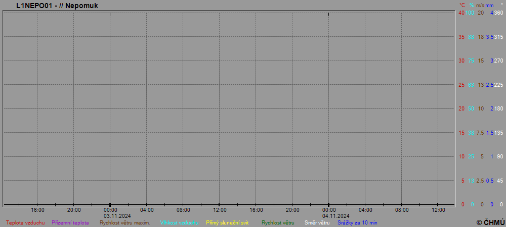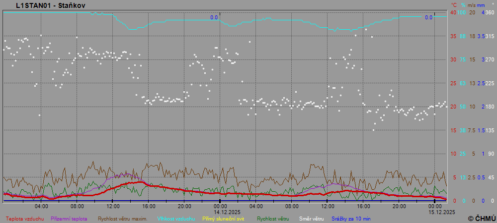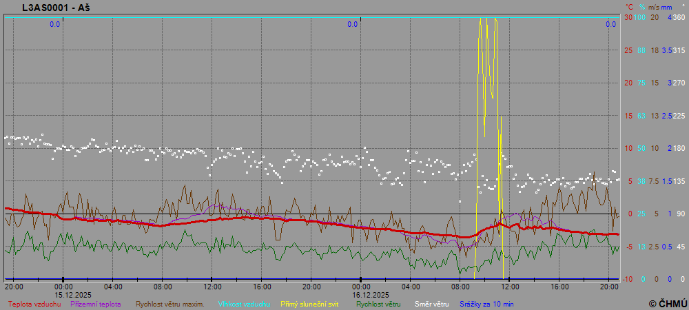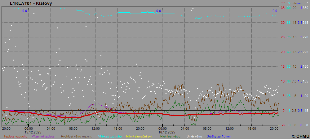 Grafy zobrazují aktuální naměřená data z automatických klimatologických stanic a jsou aktualizovány po 10 minutách. Čas na ose x je udáván v SEČ.
