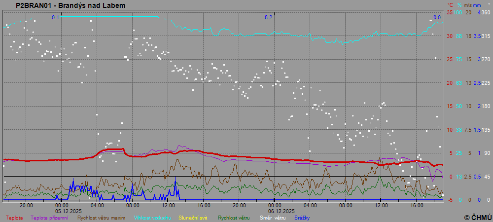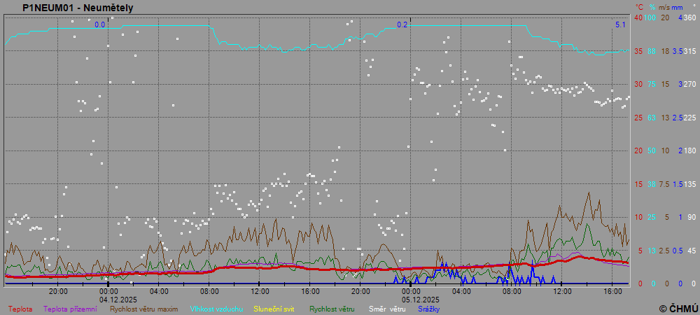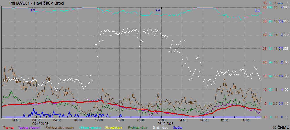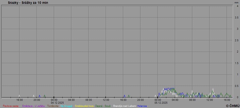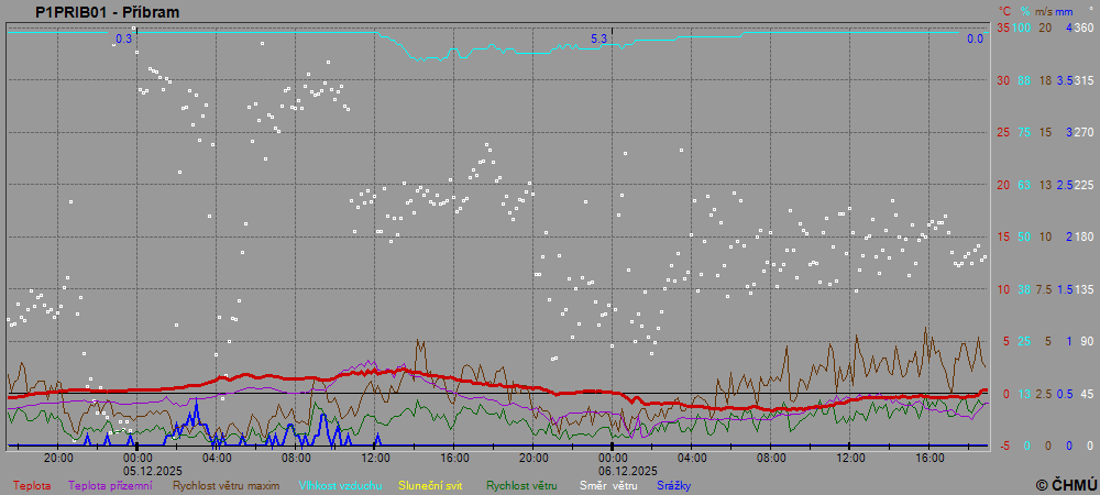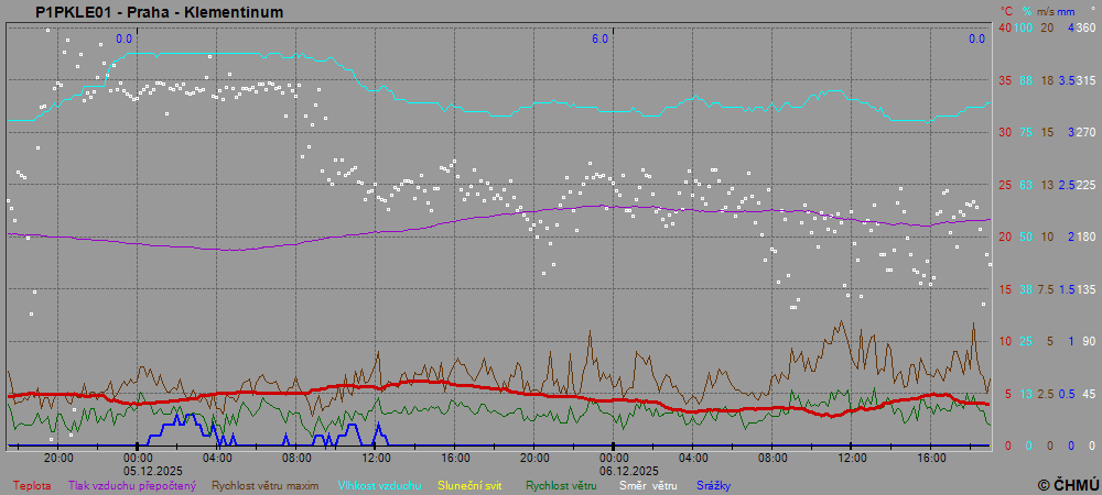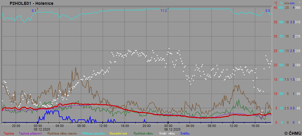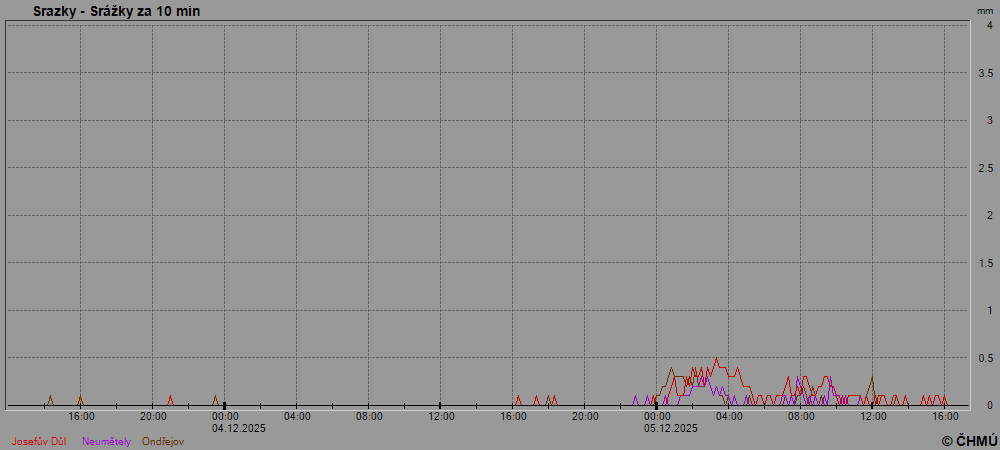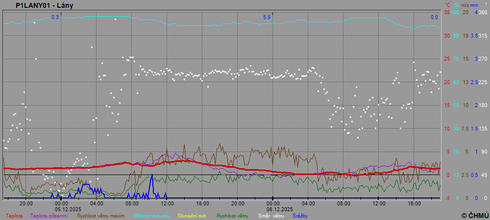 Grafy zobrazují aktuální naměřená data z automatických klimatologických stanic a jsou aktualizovány po 10 minutách. Čas na ose x je udáván v SEČ.