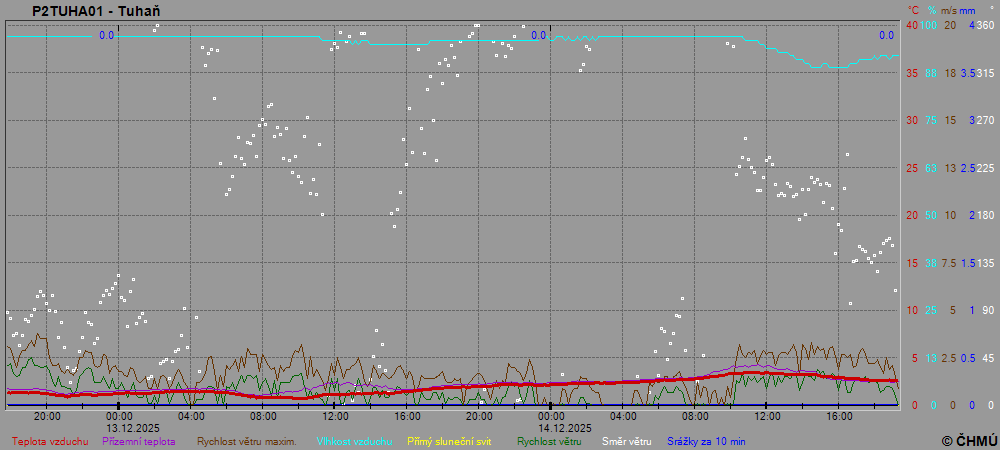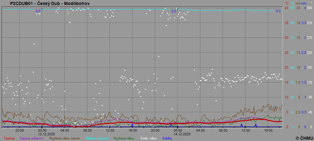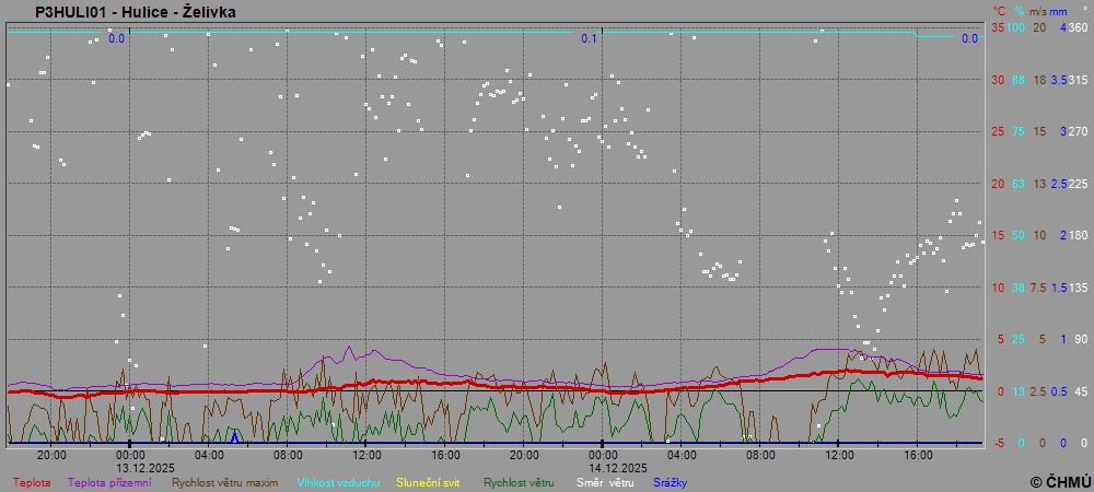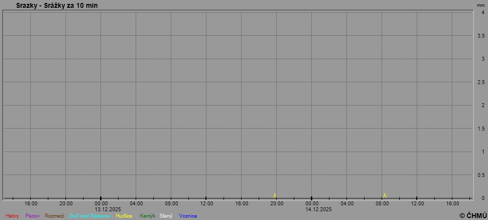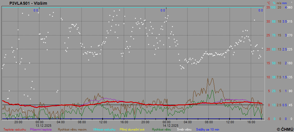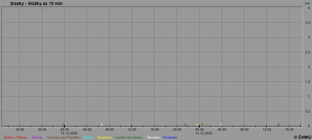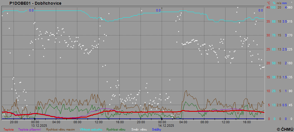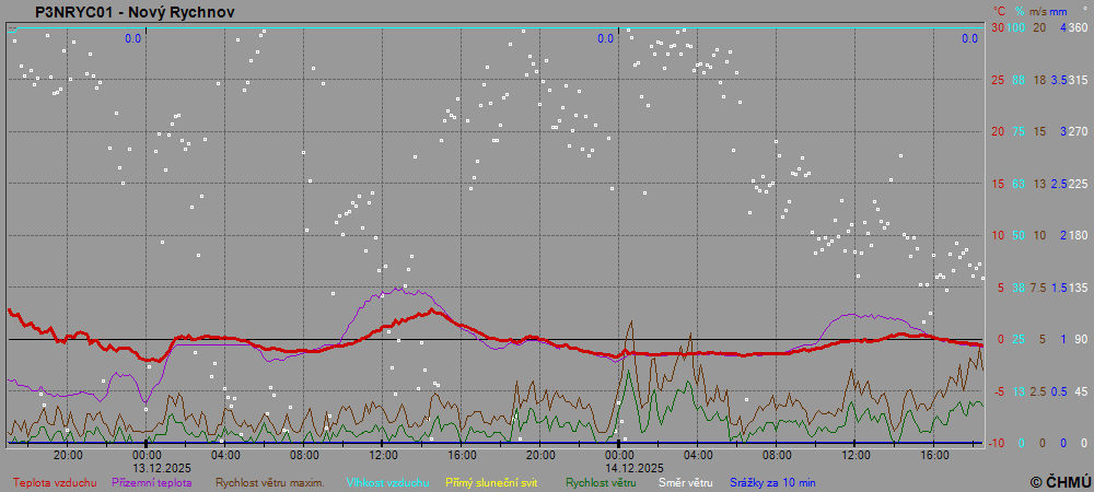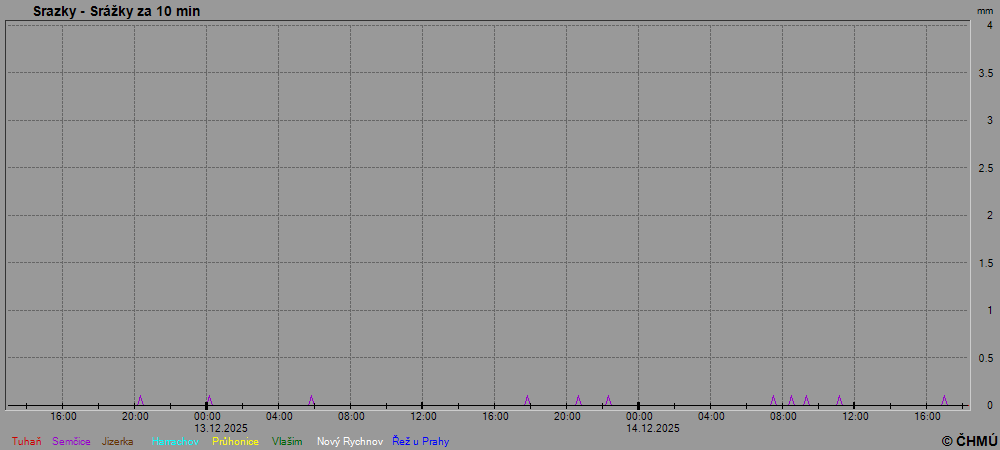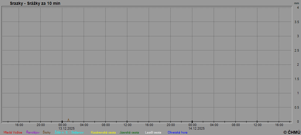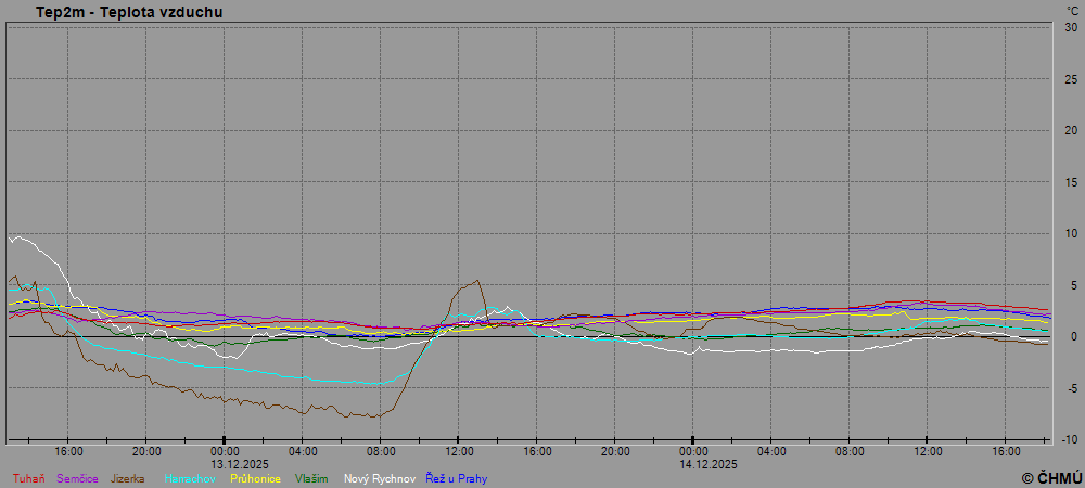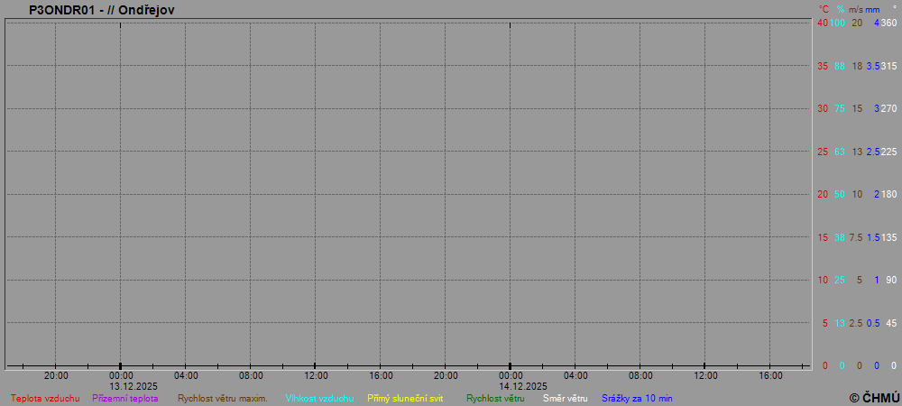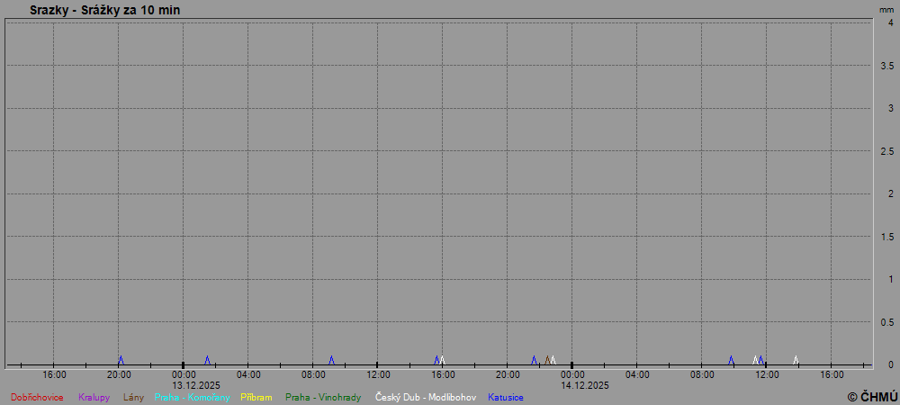 Grafy zobrazují aktuální naměřená data z automatických klimatologických stanic a jsou aktualizovány po 10 minutách. Čas na ose x je udáván v SEČ.