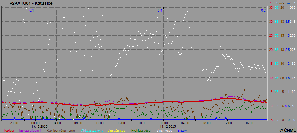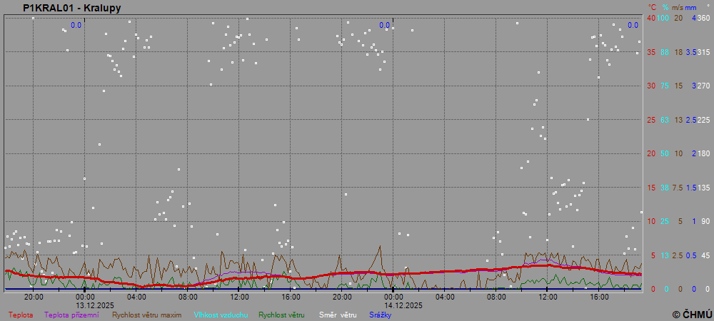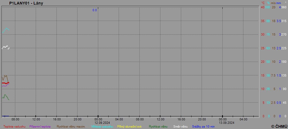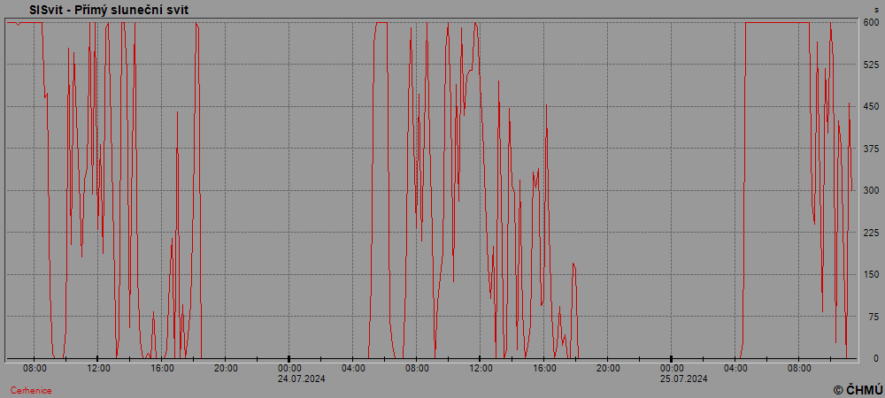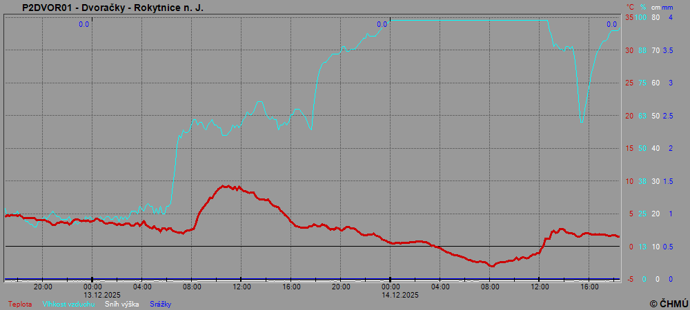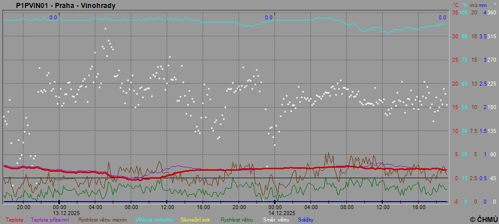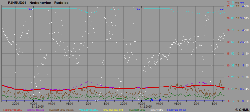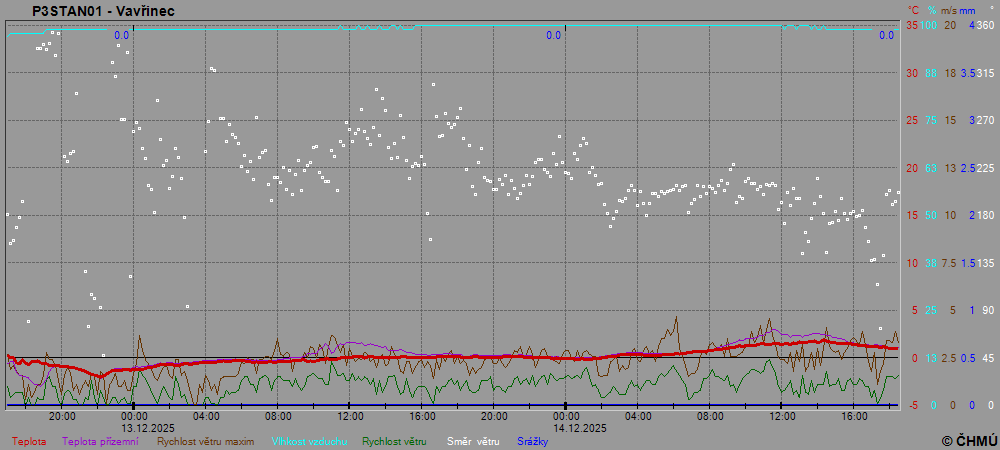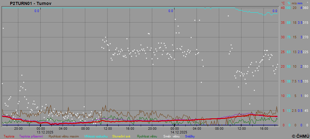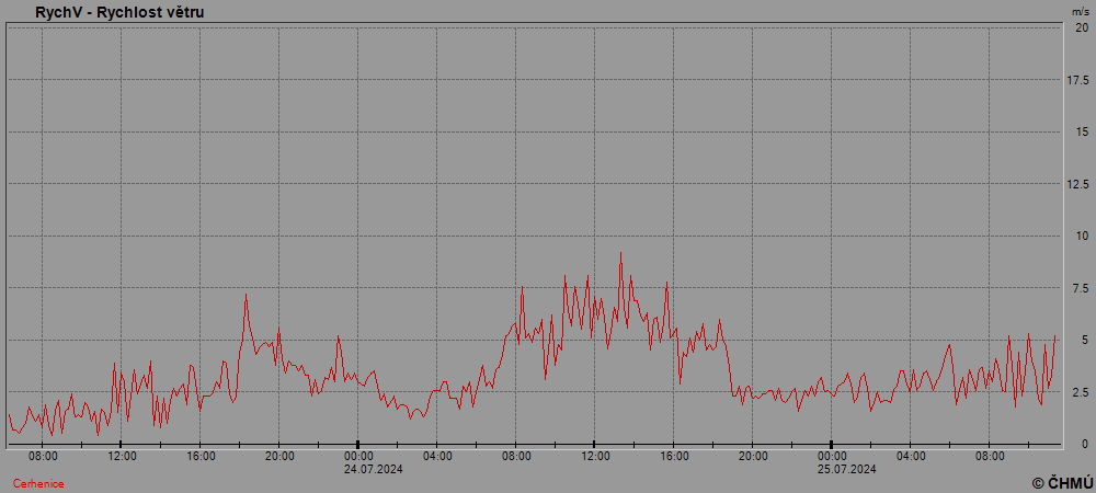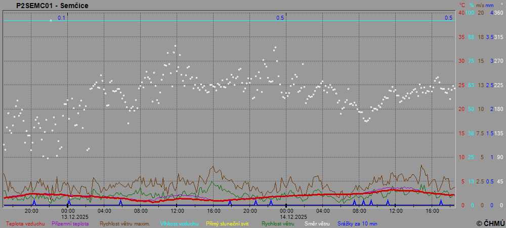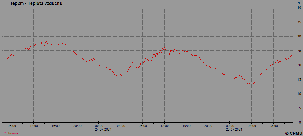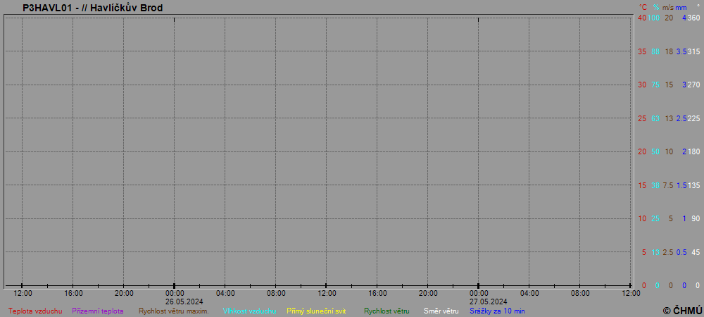 Grafy zobrazují aktuální naměřená data z automatických klimatologických stanic a jsou aktualizovány po 10 minutách. Čas na ose x je udáván v SEČ.