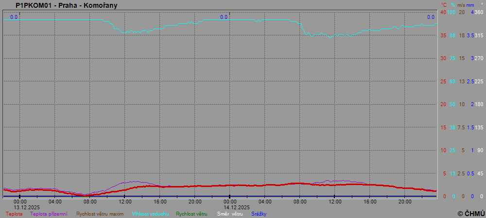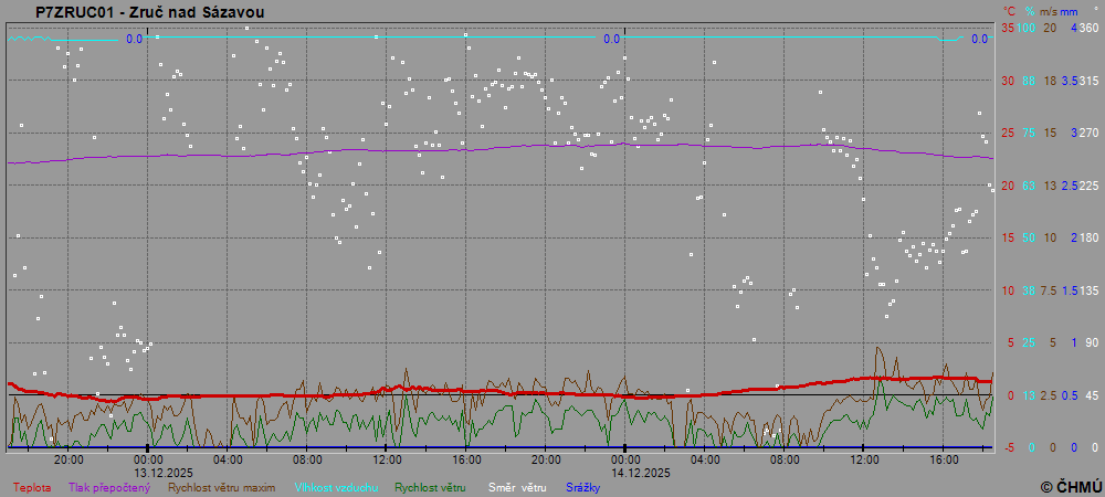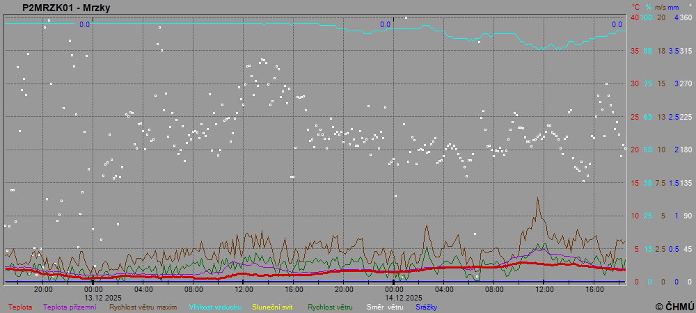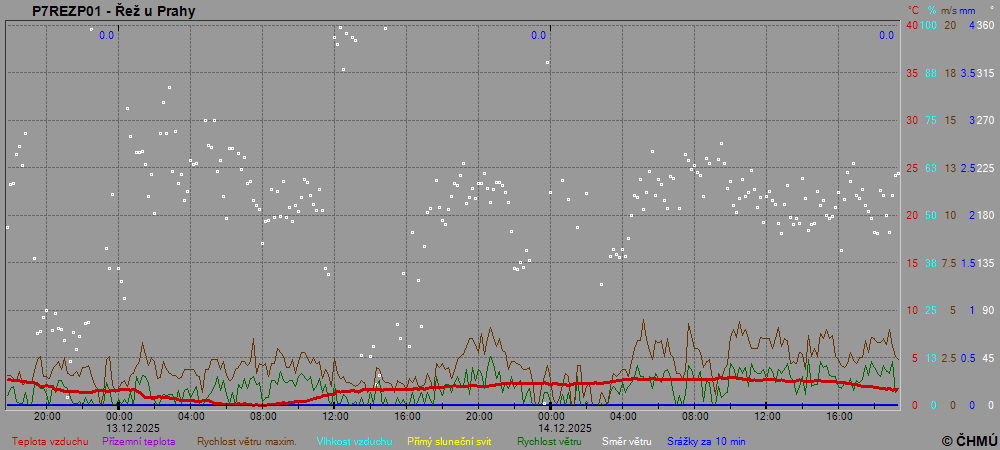 Centrem výzkumu Řež s.r.o. Neměří přízemní teplotu, sluneční svit a vlhkost vzduchu.
