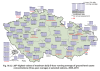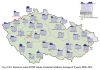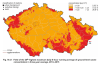 The lowest concentrations of O3 are measured at traffic stations, where ozone is degraded by a chemical reaction with NO (see Chapter IV.4.3). It can be assumed that ozone concentrations are below the limit value also in other areas with heavy traffic loads, where, however, due to the absence of measurements, the probable decrease cannot be documented by the use of current methods of map construction. Conversely, the highest concentrations are measured at rural background localities (Table XIII.10). The limit value for O3 was exceeded in the three-year period 2013–2015 in 26.8 % of the territory of the Czech Republic, inhabited by approx. 9.5 % of the population (Fig. IV.4.1).