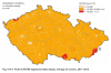 In comparison with the previous period 2012–2014, the area of the affected territory increased by 21.2 % (from 5.6 %). The reason behind the increase in O3 concentrations and the expansion of the affected area was the hot summer of 2015 with favourable meteorological conditions for the accumulation and maintenance of high concentrations of O3. In 2015 the guideline value recommended by the WHO for the maximum daily 8-hour running average of O3 concentrations (100 µg.m-3) was exceeded throughout the territory of the Czech Republic.