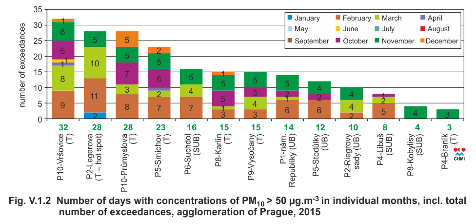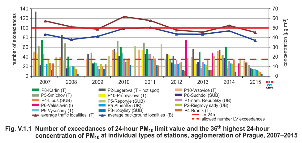 PM10, agglomeration of Prague, 2015