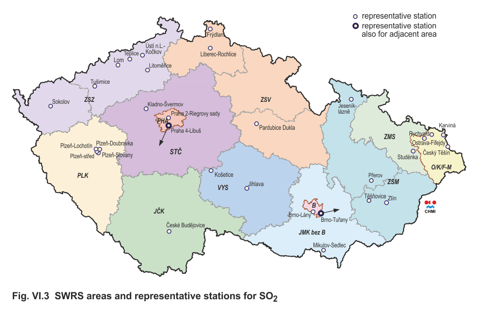Fig. VI.3 SWRS areas and representative stations for SO2