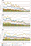 - oxidu siřičitého Proti předchozím rokům, kdy docházelo k překračování imisních limitů především oxidu siřičitého a prašného aerosolu, je po roce 1998 zařazení oblastí do třídy znečištěného až velmi silně znečištěného ovzduší dáno téměř výhradně četností překračování denního imisního limitu oxidů dusíku, které lze přičíst stále rostoucí intenzitě automobilové dopravy. Grafy na obr. 2.2.14 ukazují vývoj podílů počtu obyvatel a vývoj podílů plochy v uvedených třídách kvality ovzduší v % celkového počtu obyvatel, respektive celkové plochy ČR. Z grafů je patrný nárůst podílů v třídách I a II a pokles v třídách spadajících do oblastí znečištěného ovzduší až velmi silně znečištěného ovzduší (III.-V. třída kvality ovzduší). Jak ukazuje graf na obr. 2.2.14, tento pozitivní vývoj se po roce 1999 zastavuje či mírně zhoršuje. Přehled obcí s počtem obyvatel nad 3000 spadajících do III.-V. třídy kvality ovzduší ukazuje tab. 2.2.10. Proti roku 1996 došlo k patrnému poklesu počtu obcí zařazených do tříd znečištěného až velmi silně znečištěného ovzduší podle klasifikace uvedené v tab. 2.2.9, ze 47 na 8 v roce 1999. Jak ukazuje tab. 2.2.10, v roce 2001 se počet obcí spadajících do uvedených tříd kvality ovzduší naopak zvýšil na 27 proti 15 v roce 2000. Poznámky: 1 Metoda bodových značek [6] je jedna z metod kartografického znázorňování, která využívá jako vyjadřovací prostředky geometrické, symbolické, obrázkové a písmenové značky. Hodí se pro znázorňování polohy a kvality nespojitých bodových objektů. V této ročence je používána pro znázornění rozmístění imisních stanic. Kvantita jevu není v tomto případě vyjádřena velikostí značky, ale barevnou škálou jednotlivých tříd koncentrací základních znečišťujících látek. 2 Kartodiagram je jedna z metod kartografického znázorňování, která používá jako vyjadřovací prostředky bodové diagramy, které udávají kromě kvality i kvantitu daného jevu, a to buď v míře absolutní nebo relativní. Kartodiagramem se vyjadřují hodnoty nikoli pro jednotlivé body, nýbrž sumárně pro územní celky, v jejichž středu či těžišti jsou diagramy umístěny. V grafické ročence je tato metoda používána pro znázornění časového vývoje a velikosti imisních charakteristik základních znečišťujících látek za jednotlivé okresy České republiky. 3 Dlouhodobé řady prašného znečištění jsou charakterizovány vývojem koncentrací prašného aerosolu bez rozlišení velikosti částic (SPM). Od roku 1996 všechny automatizované stanice ČHMÚ měří frakci PM10. Pro využití těchto měření pro odhad územních průměrů prašného aerosolu byl použit přepočítávací koeficient (1,2). Tab. 2.2.9 Třídění území dle kvality ovzduší Tab. 2.2.10 Přehled obcí s počtem obyvatel nad 3000 spadajících do III.–V. třídy kvality ovzduší Obr. 2.2.9 Znázornění chodů základních imisních charakteristik - ročních aritmetických průměrů a 95% kvantilů denních průměrů koncentrace oxidu siřičitého po okresech za období 1990-2001 Obr. 2.2.10 Znázornění chodů základních imisních charakteristik - ročních aritmetických průměrů a 95% kvantilů denních průměrů koncentrace prašného aerosolu po okresech za období 1990-2001 Obr. 2.2.11 Znázornění chodů základních imisních charakteristik - ročních aritmetických průměrů a 95% kvantilů denních průměrů koncentrace oxidů dusíku po okresech za období 1990-2001 Obr. 2.2.12 Celoroční hodnocení za období 1982-2001 v Praze, severozápadní oblasti a Moravskoslezském kraji Obr. 2.2.13 Hodnocení za zimní období pro roky 1982/1983-2001/2002 v Praze, severozápadní oblasti a Moravskoslezském kraji Obr. 2.2.14 Vývoj podílu počtu obyvatel a podílu plochy v jednotlivých třídách kvality ovzduší Obr. 2.2.15 Klasifikace území České republiky podle souhrnného hodnocení kvality ovzduší