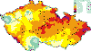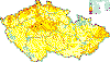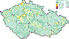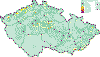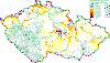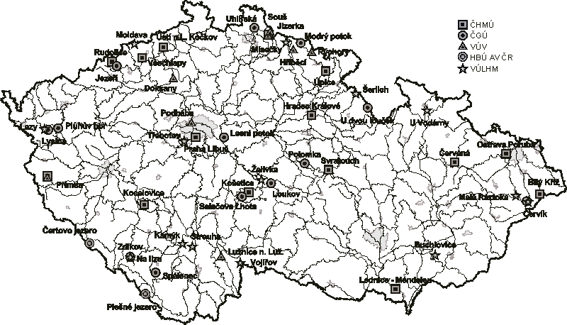 Sítě stanic organizací ČHMÚ, ČGÚ, VÚV, VÚLHM a HBÚ AV ČR, ze kterých byla v roce 2001 zpracována data o kvalitě srážek a atmosférické depozici, jsou vyneseny na obr. 3.1. Údaje o jednotlivých stanicích a metodách měření jsou uvedeny v tab. 3.4. Na týdenní interval odběru vzorků čistých srážek v souladu s mezinárodní metodikou EMEP přešla většina stanic ČHMÚ během roku 1996. Od roku 1997 byl na těchto stanicích zaveden speciální týdenní odběr „bulk“ na těžké kovy. Na stanicích ČGÚ, VÚV a VÚLHM jsou odebírány srážky „bulk“ v měsíčním intervalu. Průměrné hodnoty chemického složení atmosférických srážek a hodnoty roční mokré depozice za rok 2001 jsou uvedeny v tab. 3.5 a 3.6. Mapy mokré depozice jsou vytvořeny pro vybrané ionty z celkových chemických analýz odebraných vzorků srážek, a to konkrétně pro SO42- - S, NO3- - N, NH4+ - N, H+ (pH), F-, Pb2+, Cd2+, Ni2+. Mapové zobrazení chloridů není uvedeno, neboť jejich koncentrace nejeví žádnou systematickou místní proměnlivost a některé stanice VÚV a VÚLHM mají trvale vyšší hodnoty (Podbaba, Lužnice, Kamýk…), interpretace takto rozdílných výsledků je problematická. Pro znázornění depozičních polí byly vybrány výše zmíněné ionty v souvislosti se závažností jejich působení na složky životního prostředí. Mapy mokré depozice jednotlivých iontů byly konstruovány z pole koncentrací iontů ve srážkách (na základě průměrných ročních koncentrací vážených srážkovým úhrnem vypočtených z naměřených údajů) a z pole ročních srážkových úhrnů, které bylo vytvořeno na základě údajů ze 750 srážkoměrných stanic se zohledněním vlivu nadmořské výšky na množství srážek. Při konstrukci polí mokré depozice se na jednotlivých stanicích dává přednost výsledkům analýz čistých srážek před odběry bulk, týdennímu intervalu odběru před měsíčním odběrem. Data ze sítí stanic ČGÚ, VÚV a VÚLHM, založených na měsíčních odběrech „bulk“ (srážky s prašným spadem, viz tab. 3.4), jsou pro konstrukci map mokré depozice upravena empiricky získanými koeficienty vyjadřujícími poměr jednotlivých iontů ve vzorcích srážek typu bulk a wet-only (hodnoty pro jednotlivé ionty v rozmezí 0,94 až 1,35). Za účelem optimalizace tvorby mapových zobrazení na základě výsledků z různých zdrojů a s rozdílnou metodikou a intervaly odběrů byla jednotlivým stanicím přiřazena různá relativní váha odpovídající spolehlivosti naměřených dat v rozsahu 0,6-1,0. Pro síru, dusík a vodíkové ionty jsou uvedeny kromě map mokré depozice také mapy suché a celkové depozice. Suchá depozice síry a dusíku byla spočtena na základě polí průměrných ročních koncentrací SO2 a NOx pro ČR a depozičních rychlostí plynů pro oxid siřičitý 0,7 cm.s-1/0,35 cm.s-1 a oxidy dusíku 0,4 cm.s-1/0,1 cm.s-1 pro území s lesními porosty/území bezlesé [18]. Sečtením map mokré a suché depozice síry a dusíku byly vytvořeny mapy depozice celkové. Mapa mokré depozice vodíkových iontů byla sestrojena na základě naměřených hodnot pH ve srážkách. Mapa suché depozice vodíkových iontů odpovídá depozici plynů SO2 a NOx na základě stechiometrie za předpokladu jejich kyselé reakce v prostředí. Mapa celkové depozice vodíkových iontů vznikla součtem map depozice mokré a suché. Průměrné hodnoty depozičních toků S, N a H jsou uvedeny v následující tabulce: Tab. 3.1 Průměrné hodnoty depozičních toků S, N a H v České republice Mapové zobrazení podkorunové depozice síry bylo vytvořeno pro místa s porosty z pole koncentrací síry v podkorunových srážkách (throughfall) a z verifikovaného pole srážek procentuálně modifikovaného množstvím srážek naměřeným pod porosty na jednotlivých stanicích (v rozsahu 40–100 % srážkového úhrnu pro rok 2001). Podkorunová depozice obecně zahrnuje mokrou vertikální a horizontální depozici a suchou depozici částic a plynů v porostech a pro síru, pro kterou je vnitřní koloběh porosty zanedbatelný, by měla být podkorunová depozice dobrým odhadem depozice celkové. Mapy mokré depozice těžkých kovů Pb, Cd a Ni byly konstruovány na základě koncentrací těchto kovů ve srážkách „bulk“ na jednotlivých stanicích. Pole suché depozice olova a kadmia obsažených v aerosolu byla připravena z polí koncentrací těchto kovů v ovzduší (viz kap. 2.3). Pro hodnotu depozičních rychlostí pro kadmium obsažené v aerosolu byly použity hodnoty 0,27 cm.s-1 pro les a 0,1 cm.s-1 pro bezlesý terén, pro olovo 0,25 cm.s-1 pro les a 0,08 cm.s-1 pro bezlesý terén [18]. Výsledky