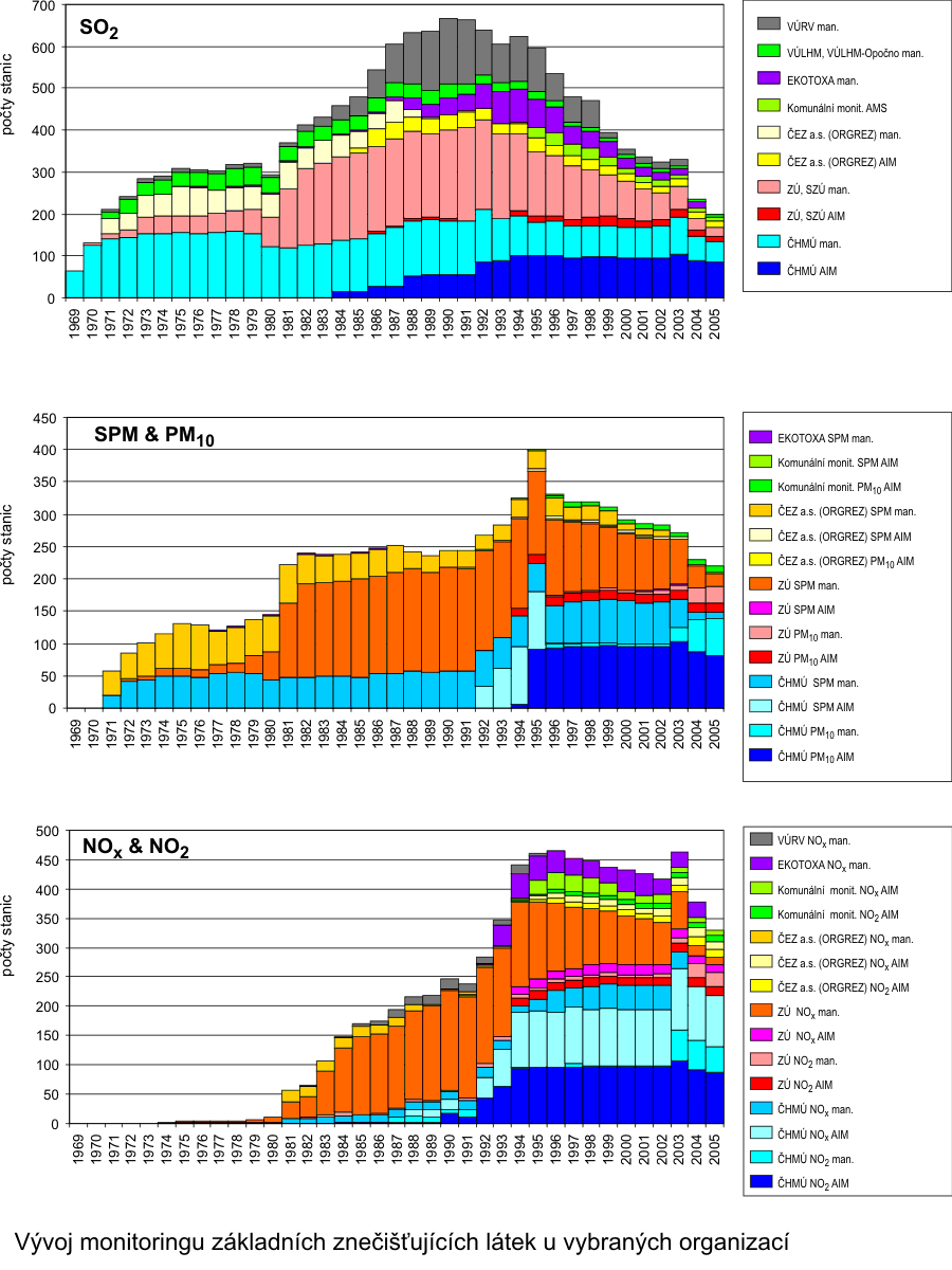 obr. II.1.2 znázorňují vývoj měření základních znečišťujících látek od roku 1971 pro