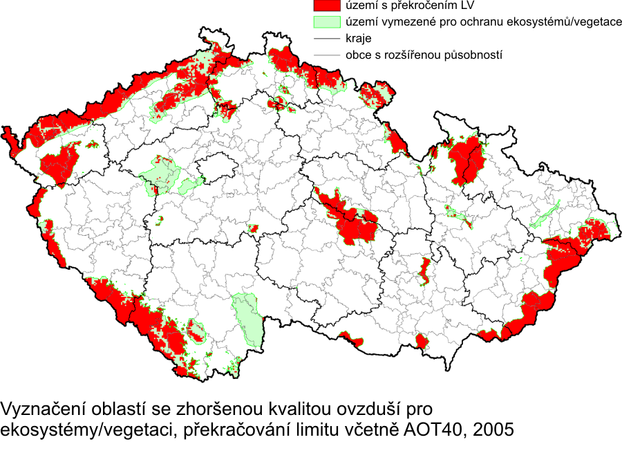 vymezeného pro ochranu vegetace dochází v důsledku nadlimitních koncentrací