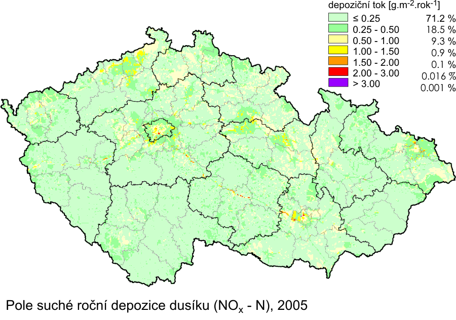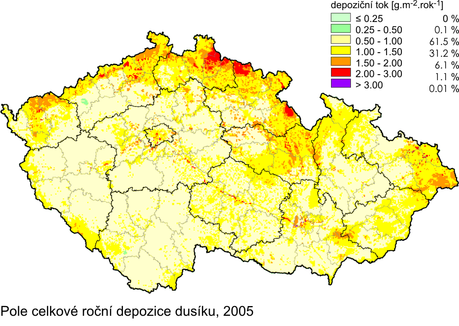 V roce 2005 byla celková depozice dusíku rovna hodnotě 78 317 t N (ox+red).