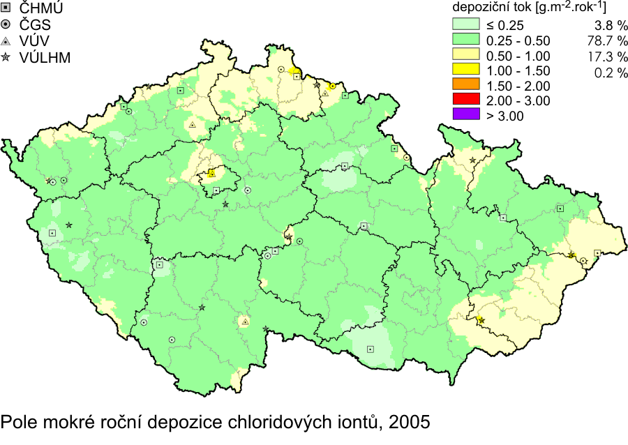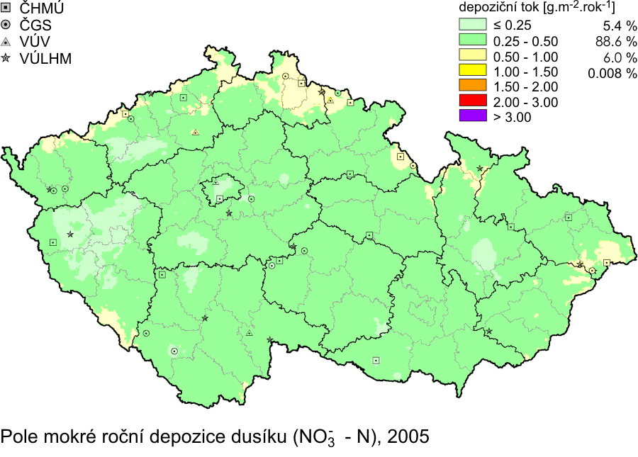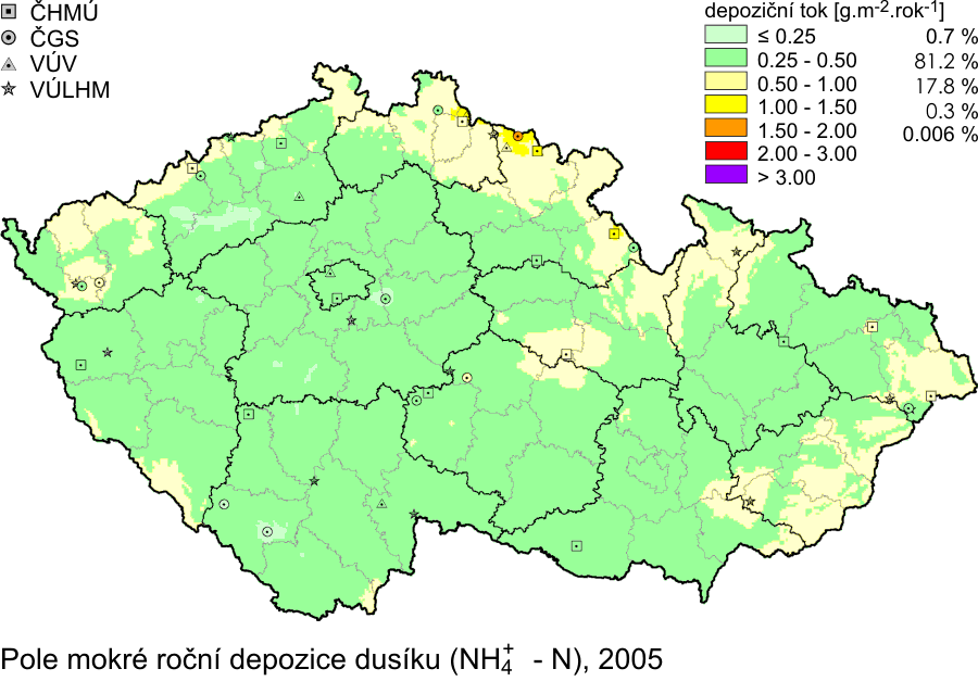 závažností jejich působení na složky životního prostředí. Mapy mokré depozice