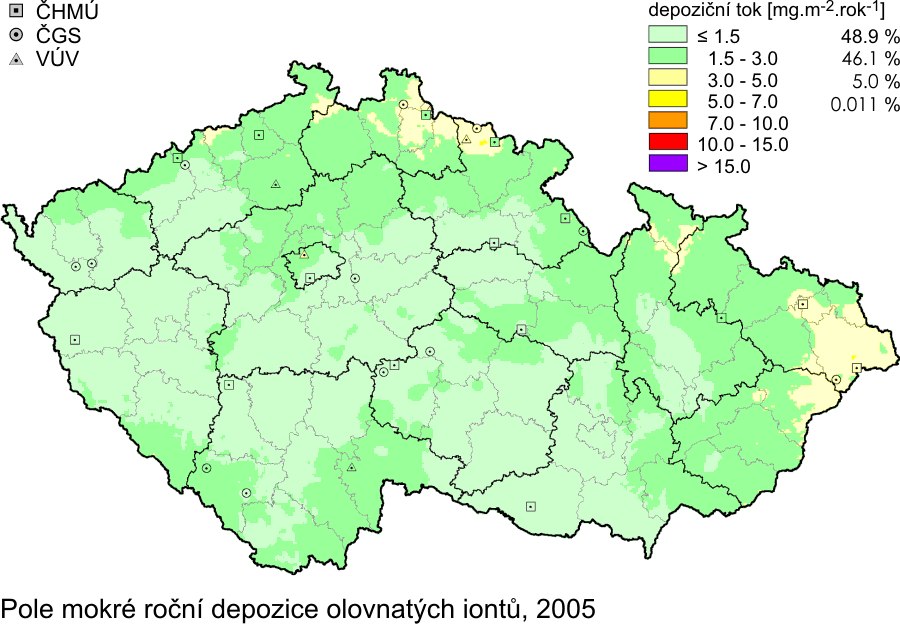 olovnatých iontů) ve 2. polovině 90. let nyní spíše stagnující stav. Pokles