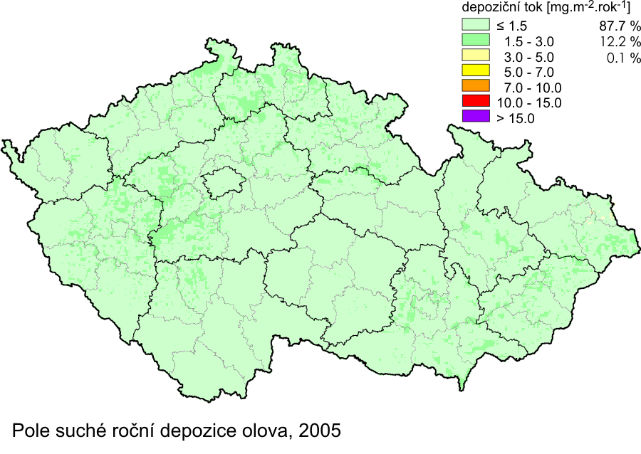 mokré depozice olovnatých iontů na výrazně nižší úrovni. Pole mokré depozice