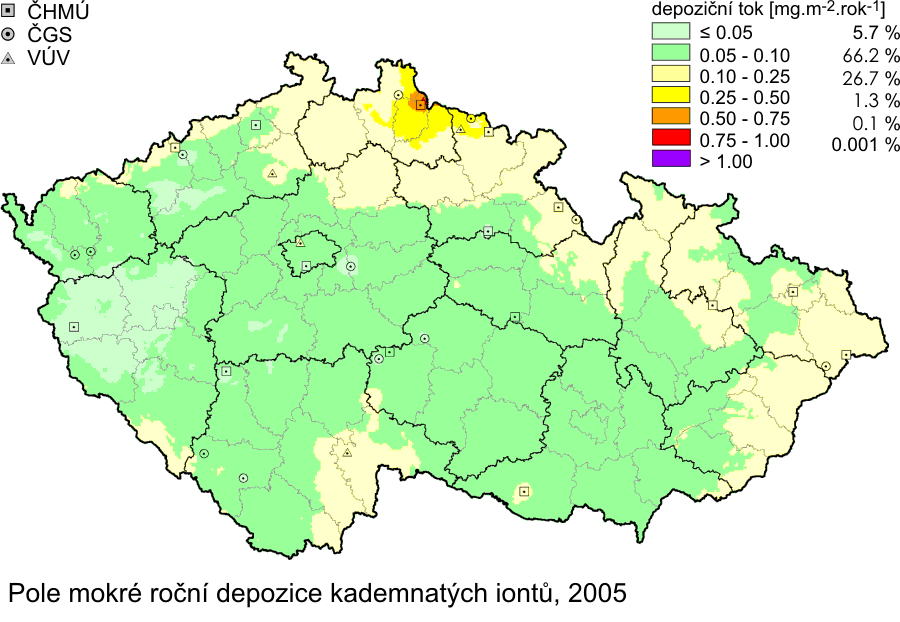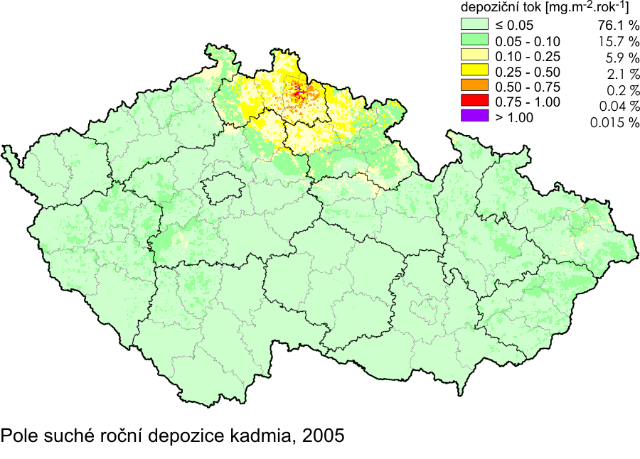 oblasti jsou dlouhodobě měřeny i zvýšené imisní koncentrace kadmia. Jedním z