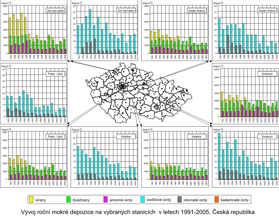Tento nárůst měl za následek i nárůst celkové mokré depozice v těchto