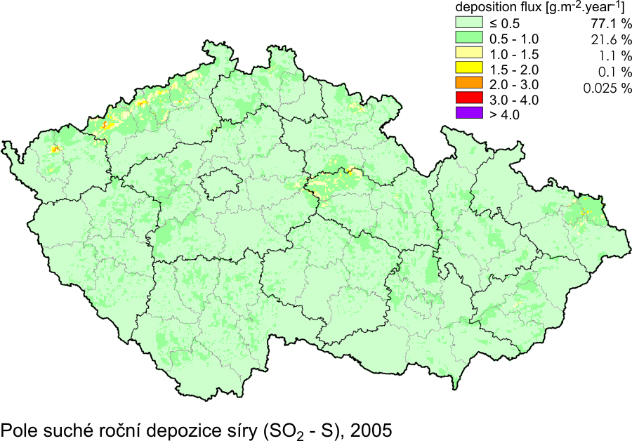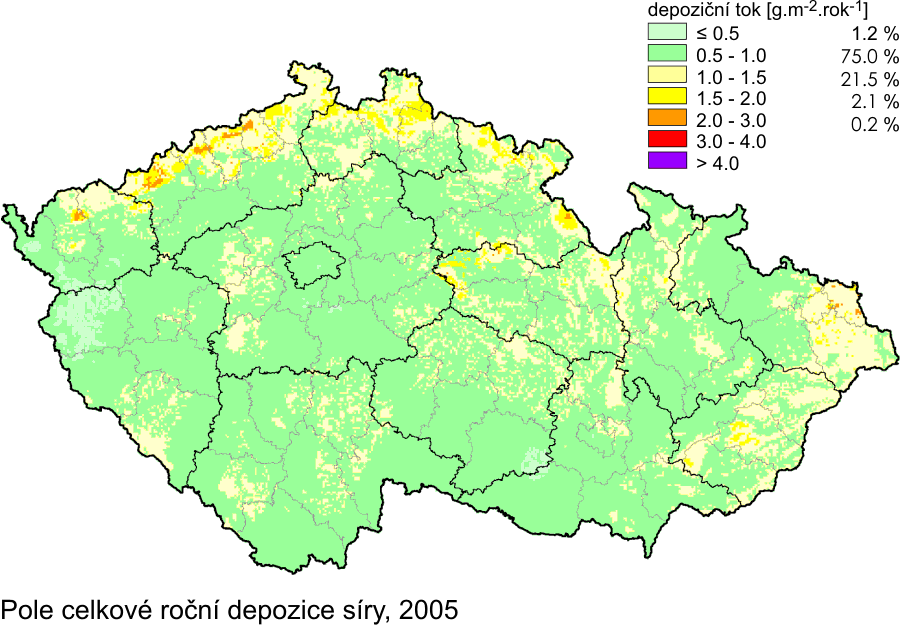a suché depozice síry a vykazuje celkovou úroveň depozice síry odpovídající
