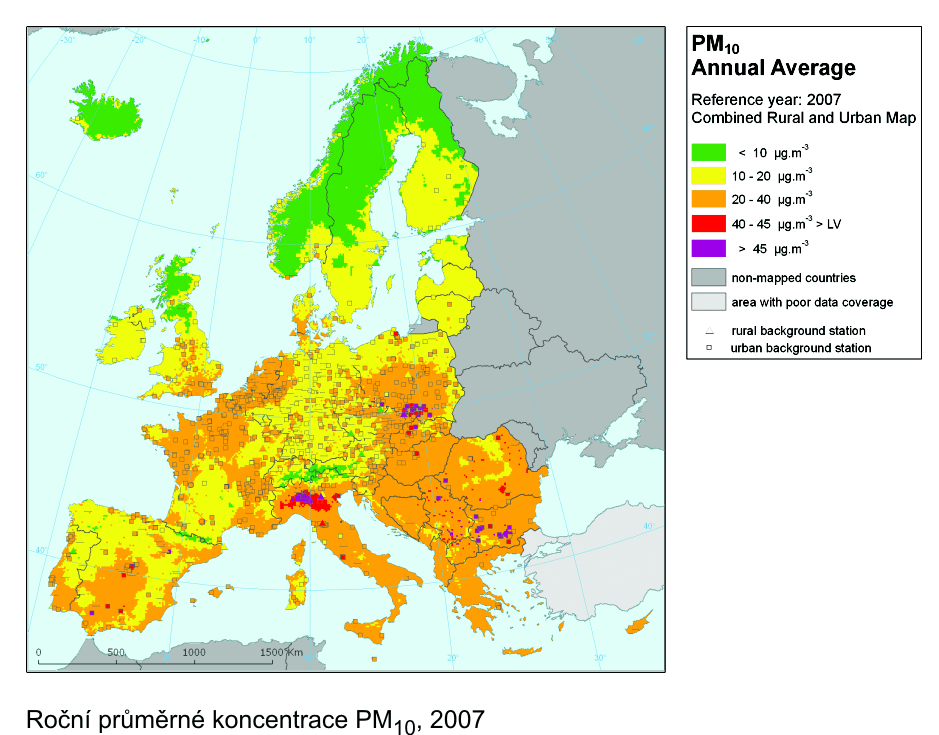 Evropské mapy dávají kontext mapám znečištění ovzduší České republiky. V případě
