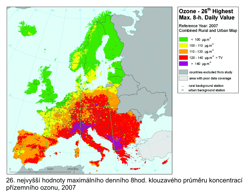 koncentrací přízemního ozonu, 2007