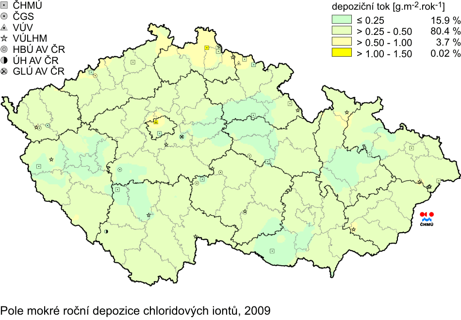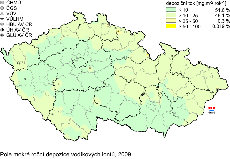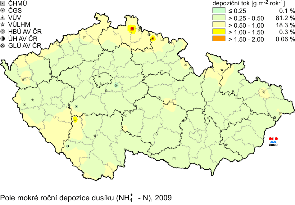 N, NH4+- N, H+ (pH), F- and Cl-, a dále jsou tvořeny mapy mokré depozice s blíže nedefinovatelným