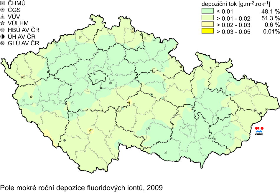 Nejvyšší hodnoty depozice fluoridových iontů byly zaznamenány na území