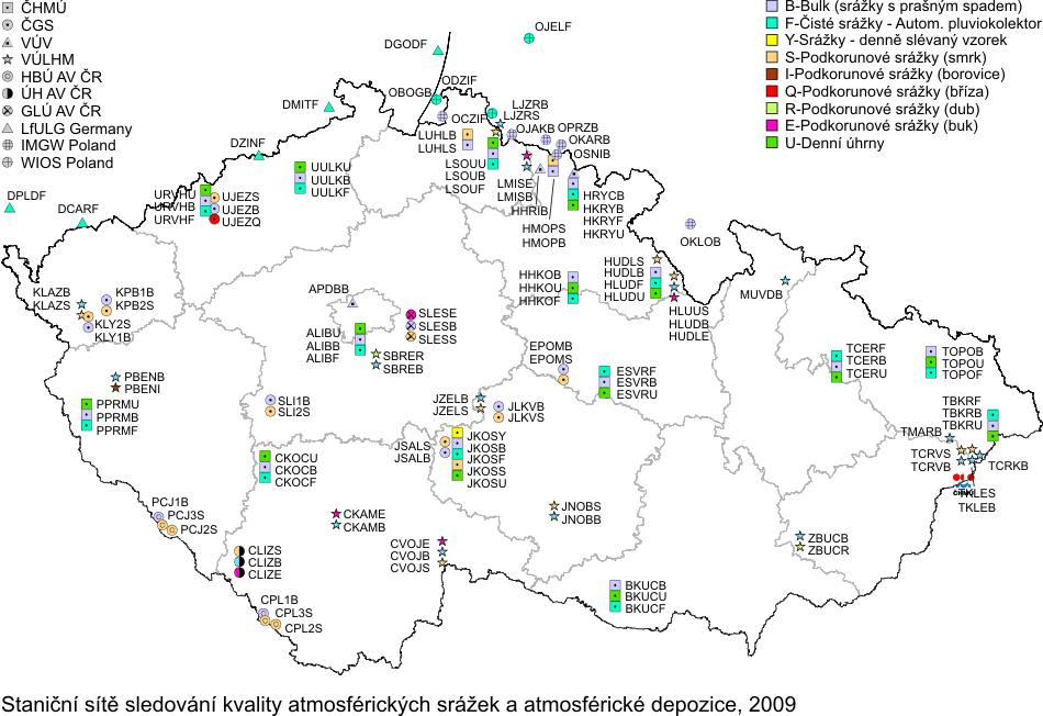 kterých zajišťuje měření ČGS, 15 ČHMÚ, 14 VÚLHM, 3 VÚV TGM a 6 HBÚ AV ČR, viz