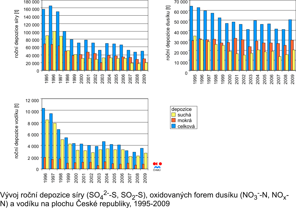depozice síranů po roce 1995 poklesla o 60 % a současně se projevil i pokles