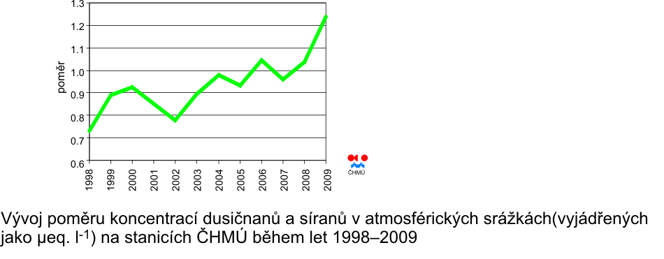 S vývojem depozice síry a dusíku lze sledovat vývoj vzájemného poměru těchto