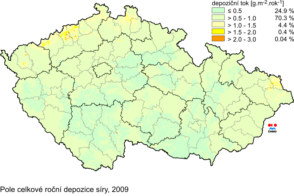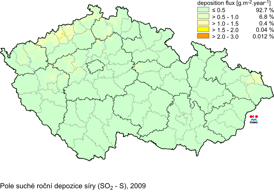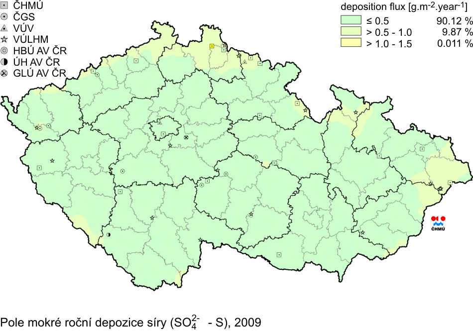 depozice síry dále poklesla, a to z důvodu snížení imisních koncentrací