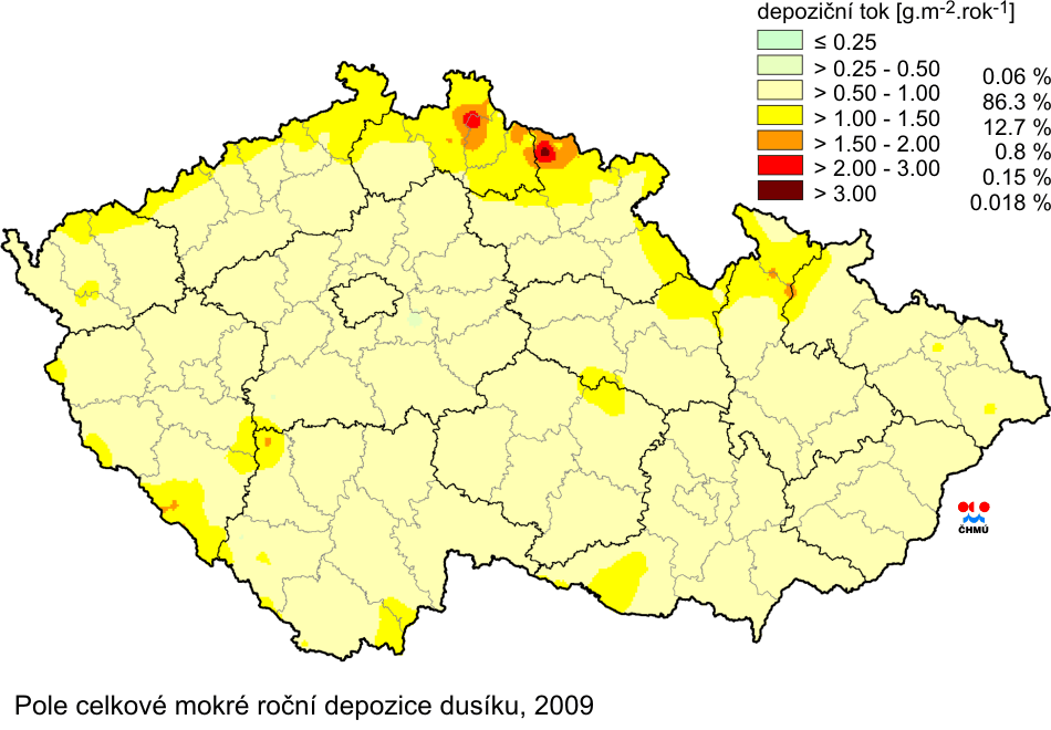 se závažností jejich působení na složky životního prostředí. Mapy mokré depozice